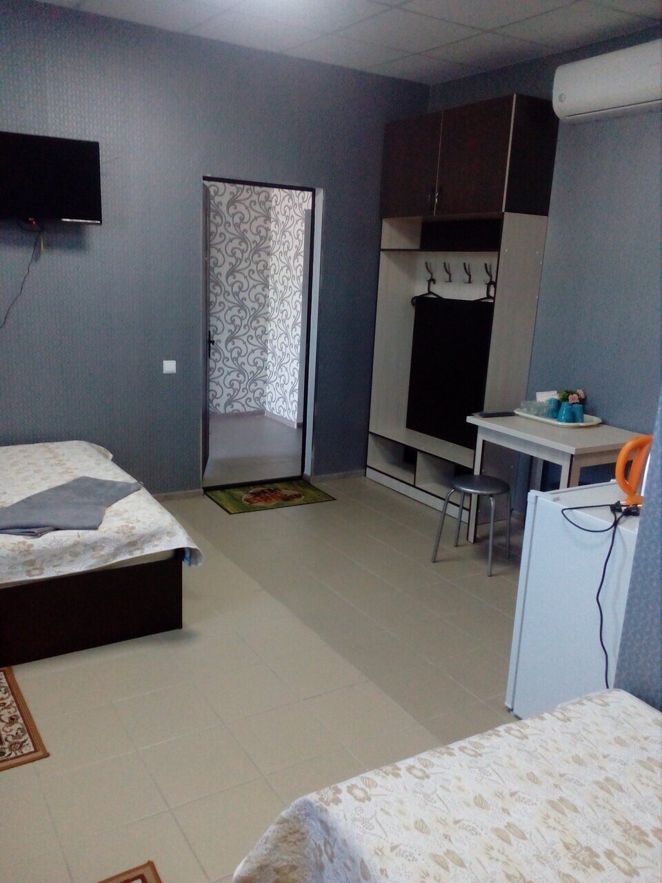 Прекрасное место для отдыха. Чисто и уютно. В номере двухспальная кровать, диван-кровать, кондиционер, небольшой холодильник, чайник, полотенца, чистое постельное бельё. Кухня на два номера, но нам повезло соседний номер был свободный. Недалеко от трассы, пятёрочка и магнит в двух шагах. Недорого. Можно заказать еду в номер из ближайшего кафе.