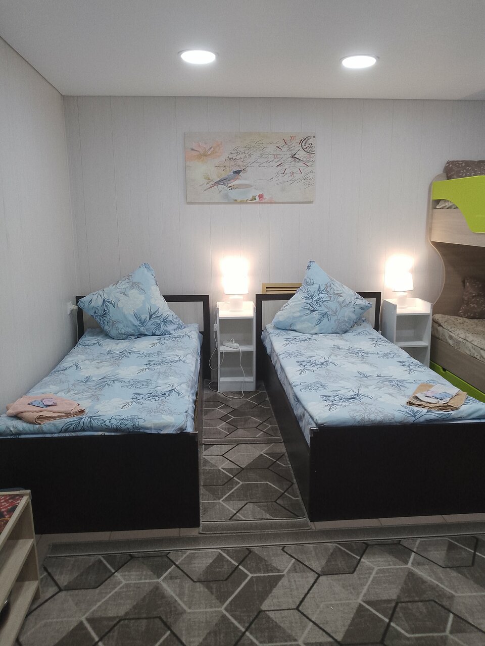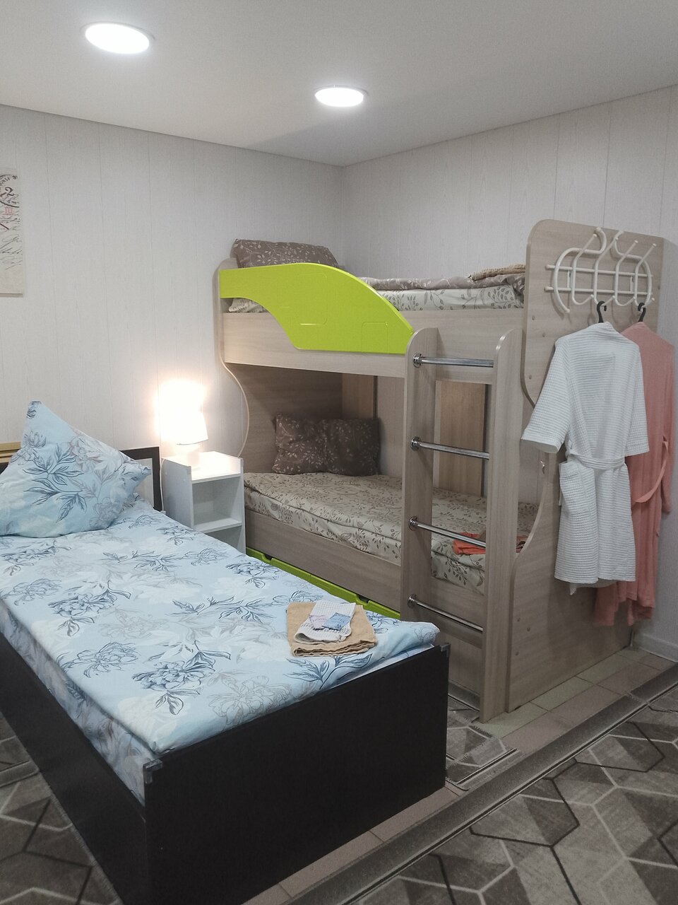 - Разрешено проживание с домашними животными.; Парковка рядом.; Удобно для семей с детьми (двухъярусные кровати).; Возможность раннего заселения и позднего выезда.; Свежий ремонт.
