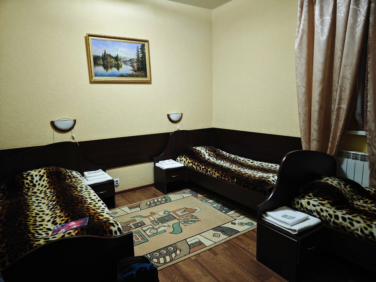 Неплохая гостиница, но при заселении двух людей в номер, был предоставлен 1 комплект полотенец, 1 халат и 1 тапочки, по просьбе предоставили только полотенца. Оплату за несколько дней проживания не берут, необходимо за каждые сутки оплачивать отдельно, что очень неудобно. Номер был чистый, но просится ремонт. Разетки очень плохие. Стоимость номеров не соответствует их качеству