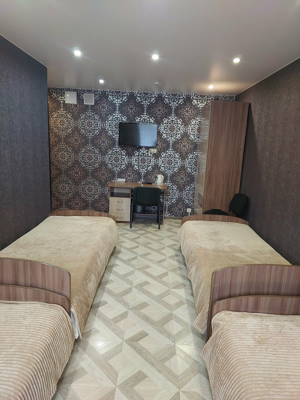 Очень неплохой хостел для северного города, ожидать ВАУ не стоит, но и не разочарует. Брал люкс, есть душ , холодильник, чайник, кухня общая, кровать полуторка, плазма 32-35) Чисто, свежий ремонт, но прохладно.