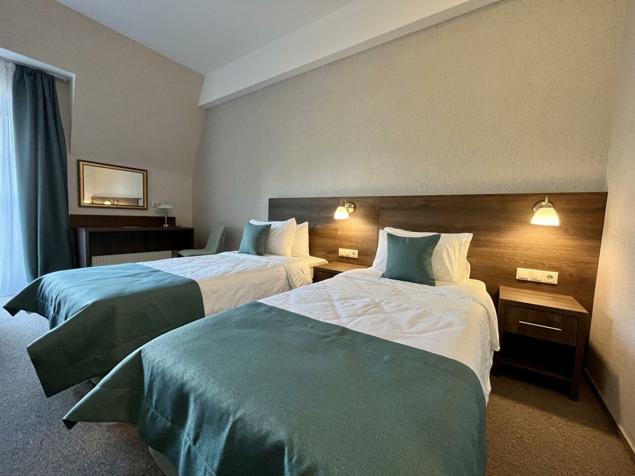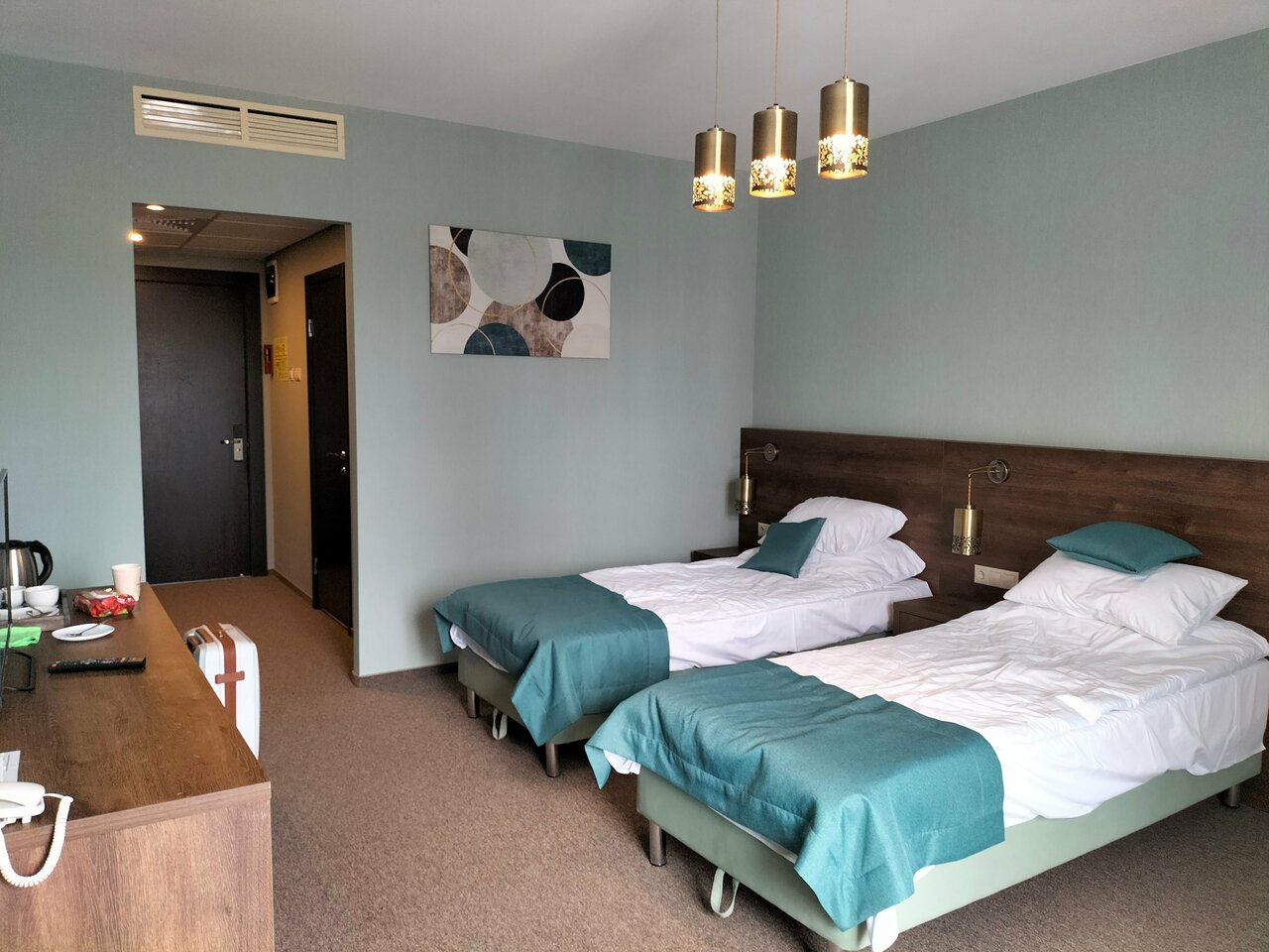 1-комнатный номер площадью 21 кв.м. В номере имеется 1 2-спальная кровать или 2 1-спальных кровати, гардероб (шкаф купе) с зеркалами в полный рост, чемоданница, рабочий стол, телевизор с плоским экраном, телефон, полный санузел с душевой кабиной ...