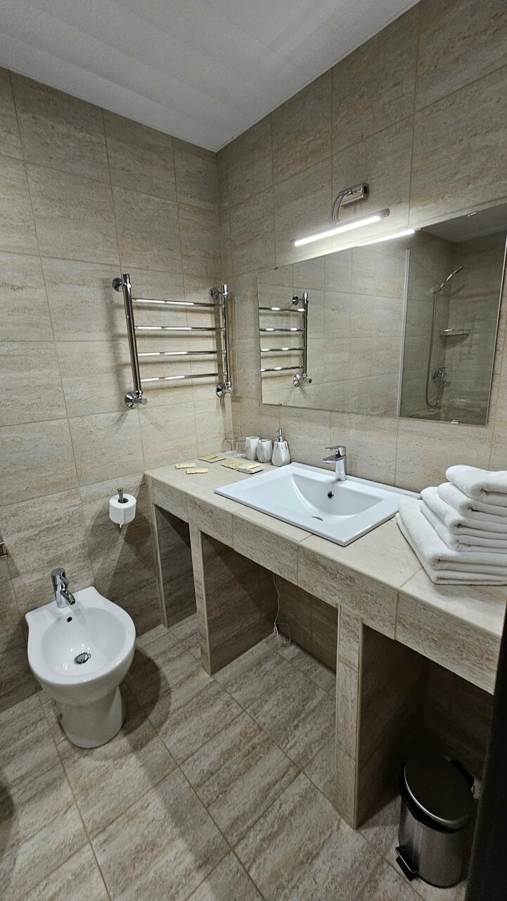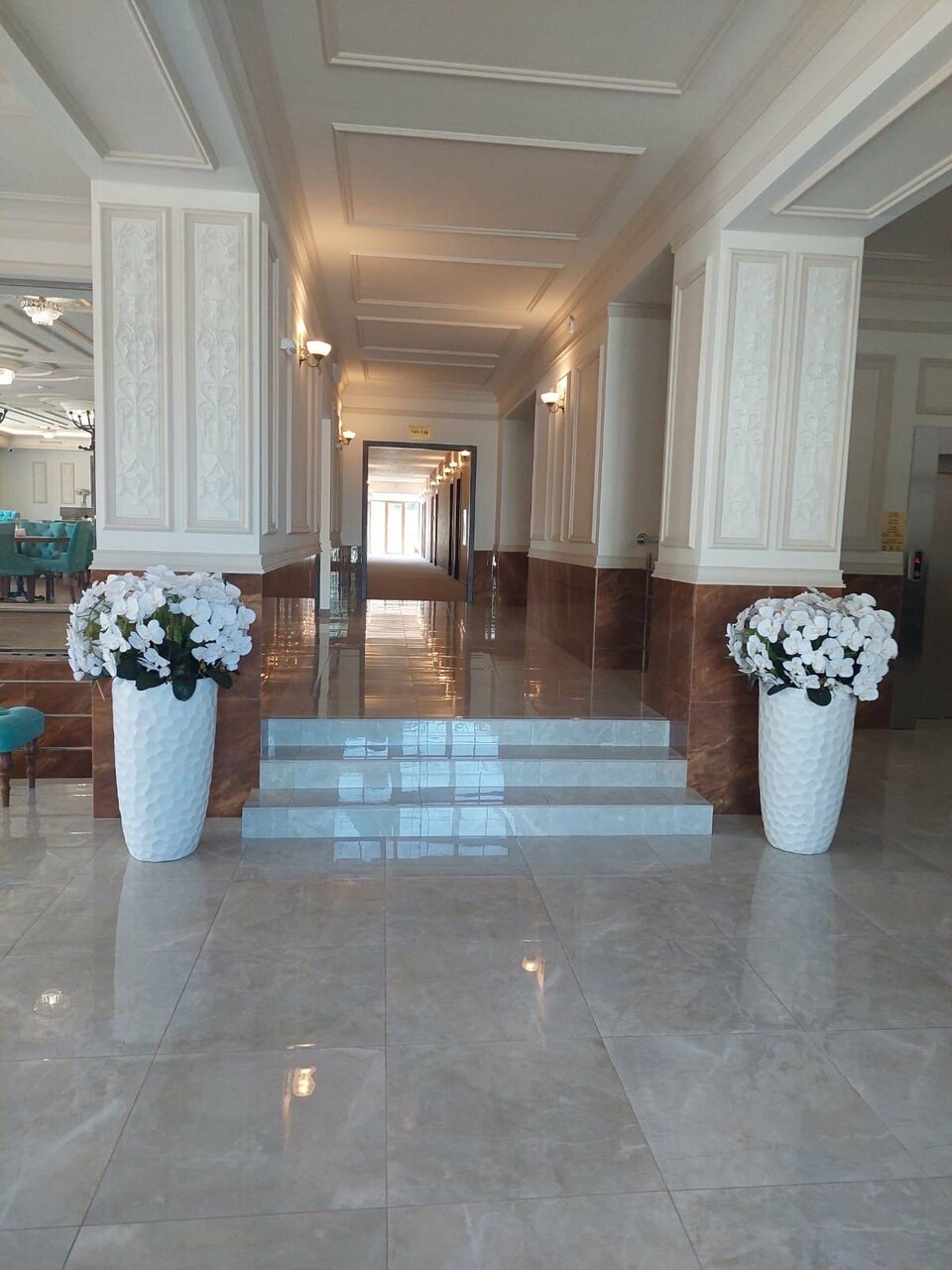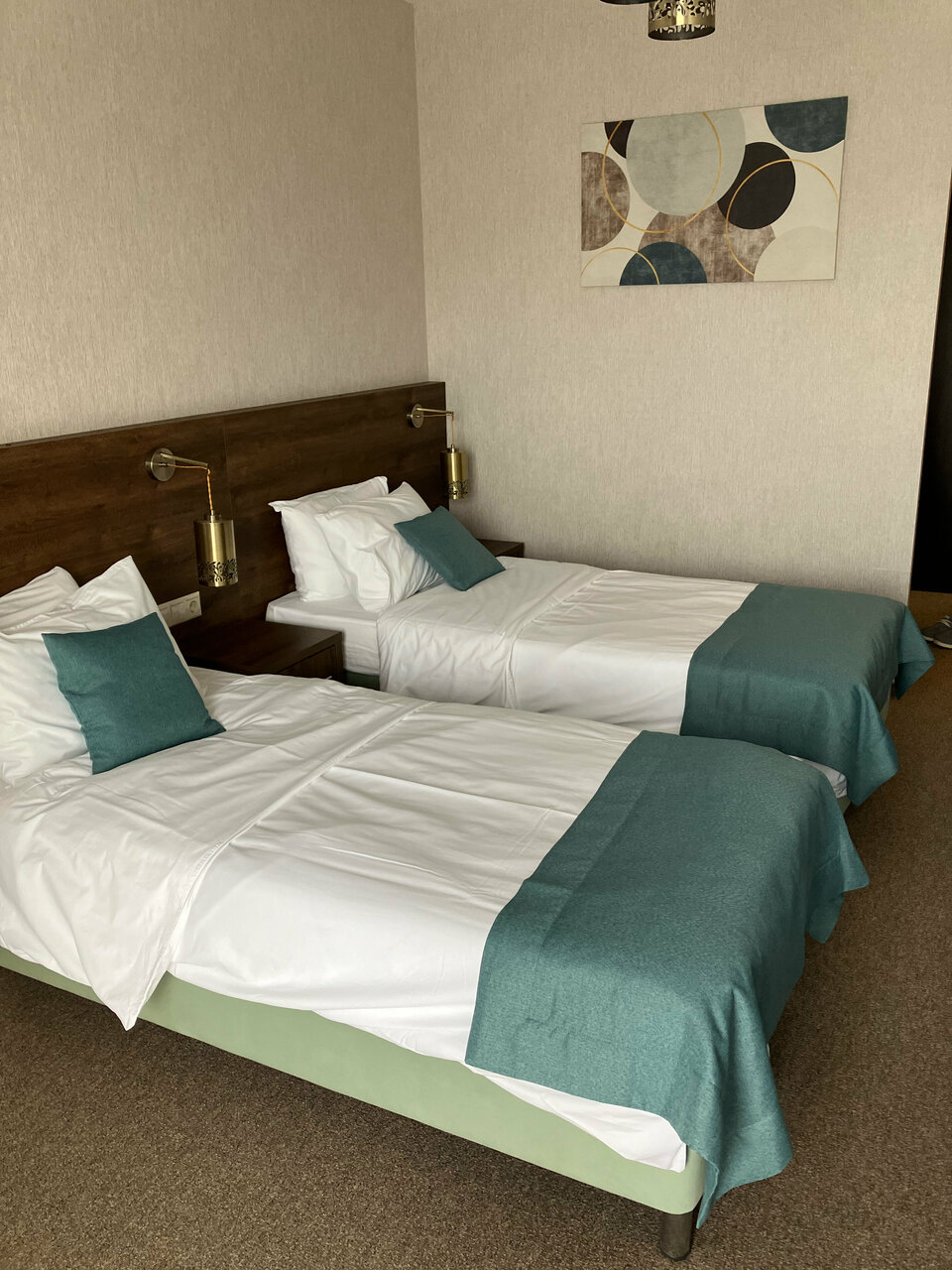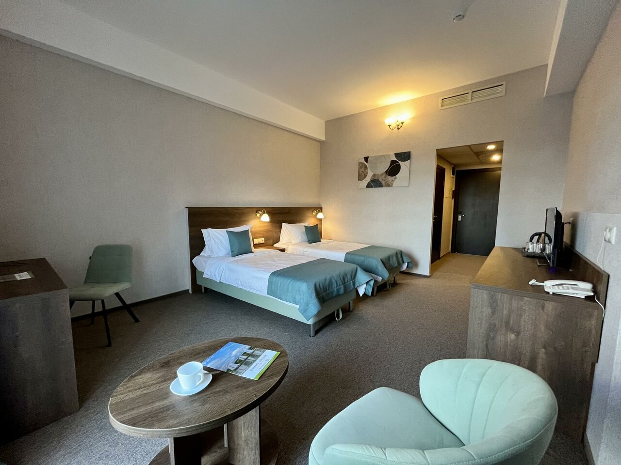 Новый отель. Очень хороший интерьер и экстерьер. Большие номера, чистые принадлежности, тапочки, чайник, чай. Приветливый персонал, большая зона ресторана, но в ресторане только завтрак за отдельную плату. Завтрак недешевый, но по мне так я один раз взял, больше спасибо не надо. Вай фай. Это отдельный квест с подключением, ну и если все-таки подключились, попробуйте попользоваться — у меня не получилось. Приезжайте со своим интернетом как я, никаких проблем не было, даже телевизор смотрели по своему интернету ибо телевизор — еще один квест. Он типа смарт и все показывает через никакущий местный тырнет. Я и приложения менял и настройки приложений ничего не срослось, тормозит, икает, пропадает. На следующий год не смотря на все эти проблемы всё равно приедем сюда. Расположение хорошее, сам отель весьма неплох, персонал отзывчивый.