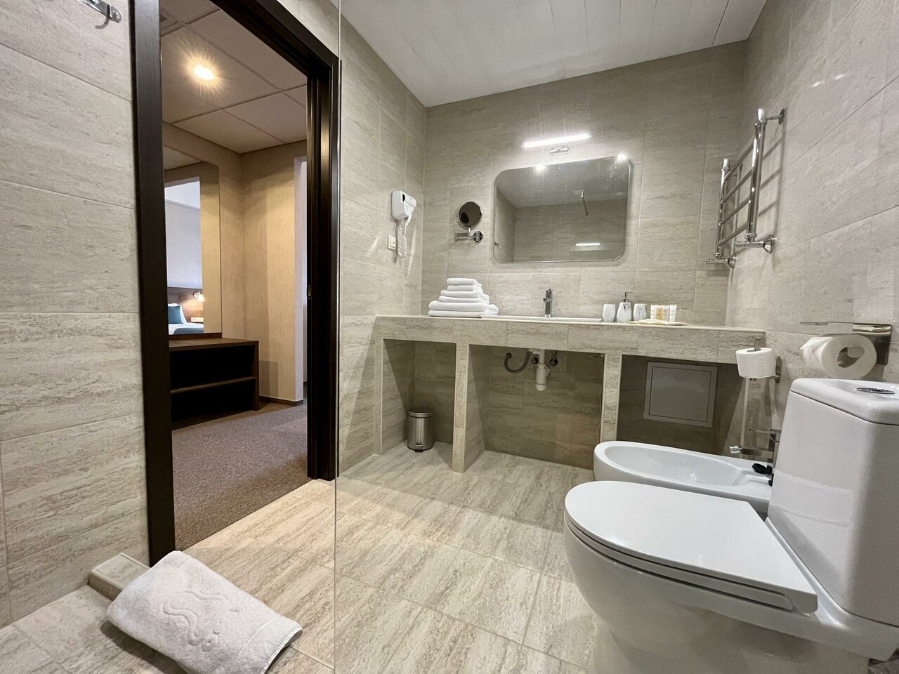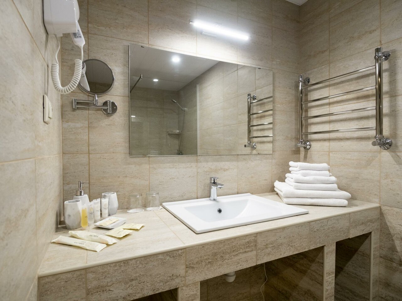 1-комнатный номер площадью 18 кв.м. В номере имеется 1 2-спальная кровать, гардероб (шкаф купе) с зеркалами в полный рост, чемоданница, туалетный столик, холодильник, полукресло, телевизор с плоским экраном, телефон, полный санузел с душевой кабин...