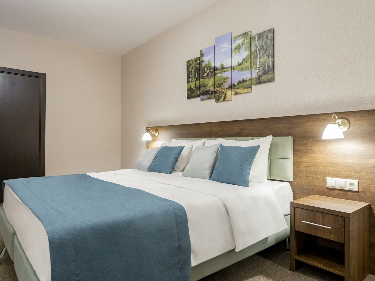 Гостям предлагают комфортные номера (от 3500 до 6000 ₽/ночь) с кондиционером, звукоизоляцией, Wi-Fi, телевизором и мини-баром. Доступны гипоаллергенные комнаты, питание (завтрак по меню) и ресторан.