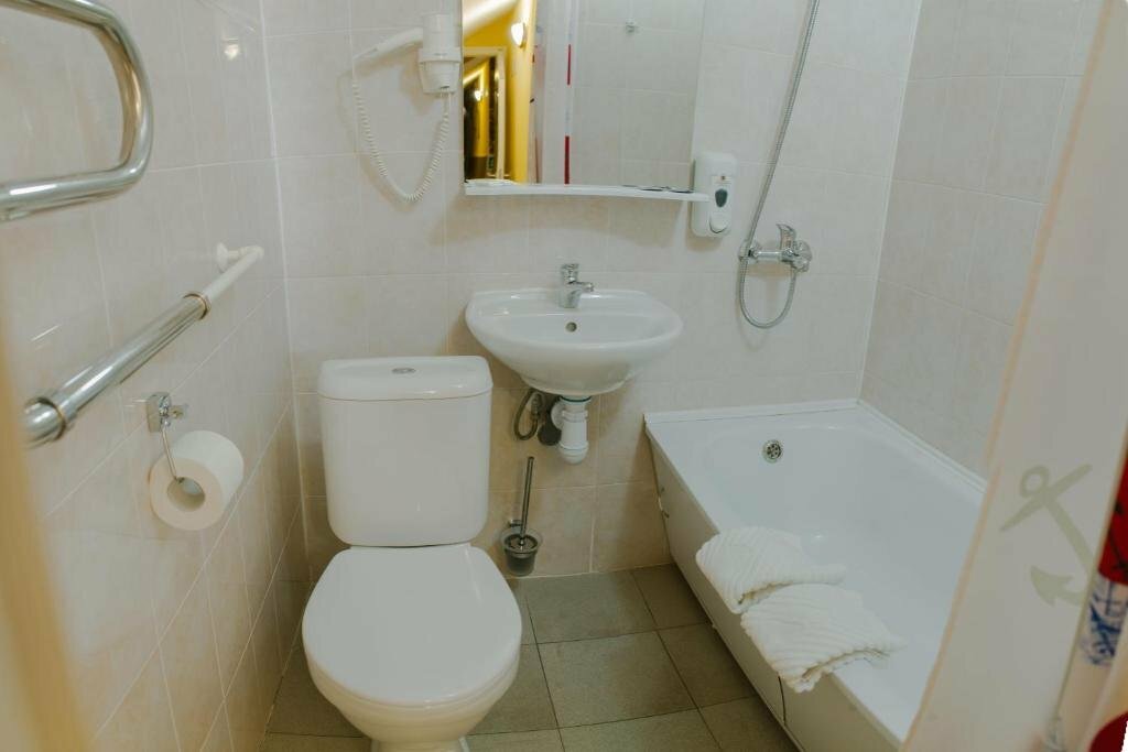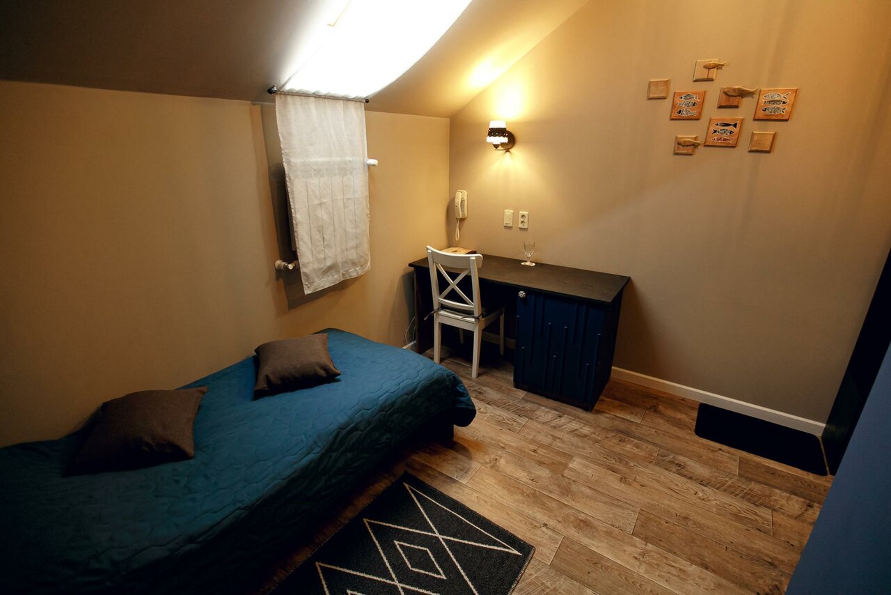 Отличный отель, стилизованный под морскую тематику. Я останавливалась в кубрике 6. Очень чисто. Персонал вежливый. Завтраки — и российский и голландский — очень вкусные. На этаже стоит кулер с водой, можно пить чай. Меню в ресторане на обед или ужин очень вкусное. Расположен недалеко от достопримечательностей. Если пойти налево — это центр города, музей утюга, Красная площадь. Если пойти направо, примерно на таком же расстоянии — Горицкий монастырь. Чуть дальше Ботик Петра 1, музей паровозов и т.п. Вид из окна хороший, приятный. Не шумно. Батарея регулируется