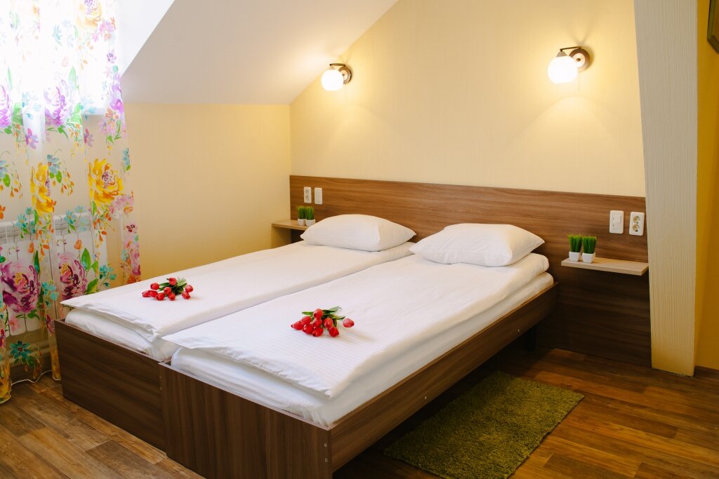 Жила в гостинице, очень удобное расположение, прекрасный сервис, цена абсолютно соответствует стоимости. Но. Разместить номер с мансардным окном, где затруднено проветривание, рядом с сауной, это особая форма извращения. Духота страшная, запах сауны, как следствие — дикая мигрень утром, к запаху сауны примешался запах мангала и копченой рыбы. Если поедете — запомните -каюта 4 на 3 этаже, просите любой номер, только не этот. Ресторан неплохой, сервис отличный, все быстро, но толпы народа, бронируйте заранее.