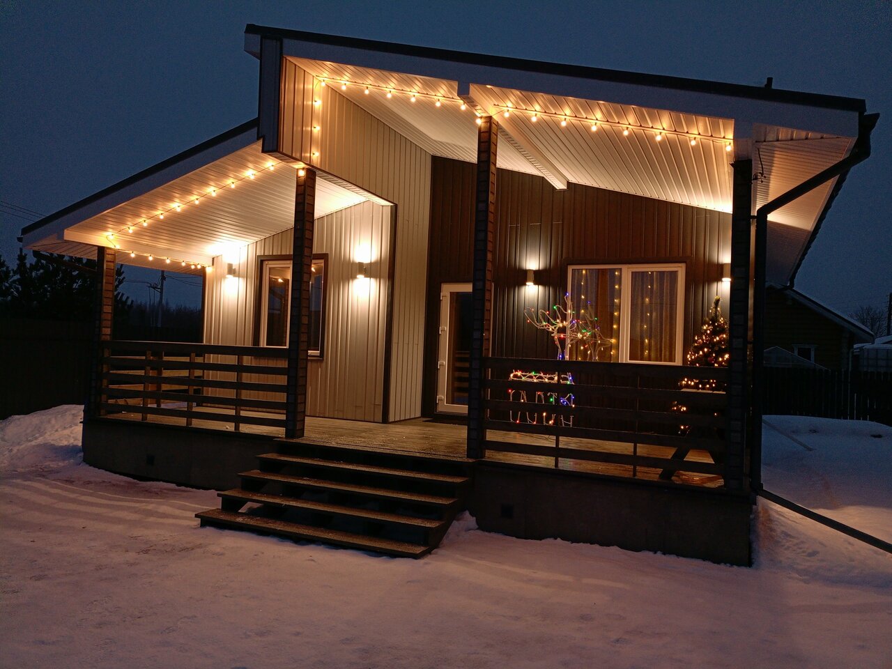 Видно что новый дом, вечером просто супер выглядит дом когда он полностью подсвечен огнями! Олень прикольный, до 6 человек самое то!