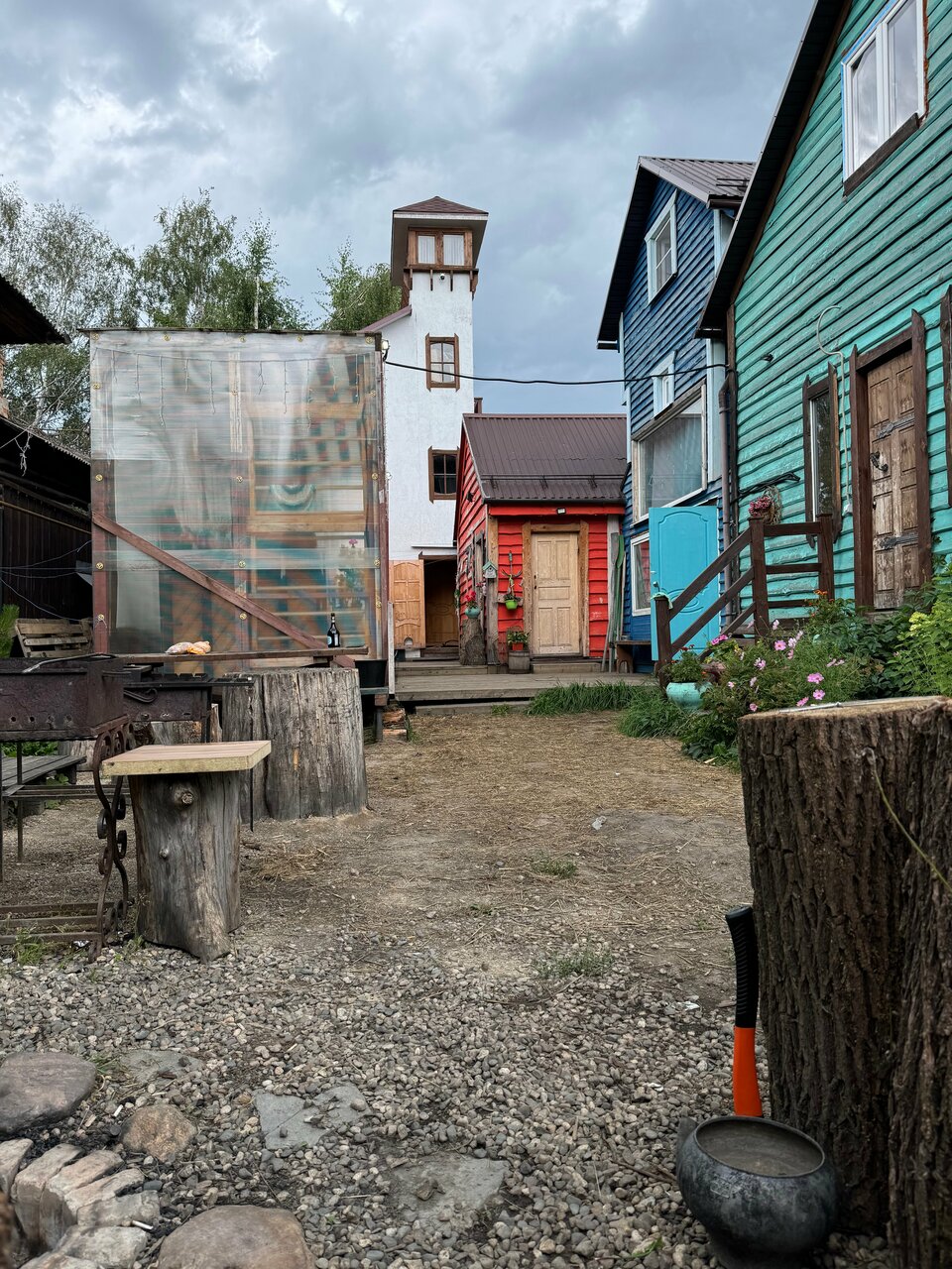 Мы были в бирюзовом доме — самые лучшие воспоминания из ночёвок в путешествии по золотому кольцу. Атмосферный, наполненный уютными деталями домик с антуражным двором. Есть мангалы, места для уличных посиделок. В доме 8-9 спальных мест. Даже столовые приборы необычные. В общем — каждая деталь на своем месте и добавляет шарма этому месту)