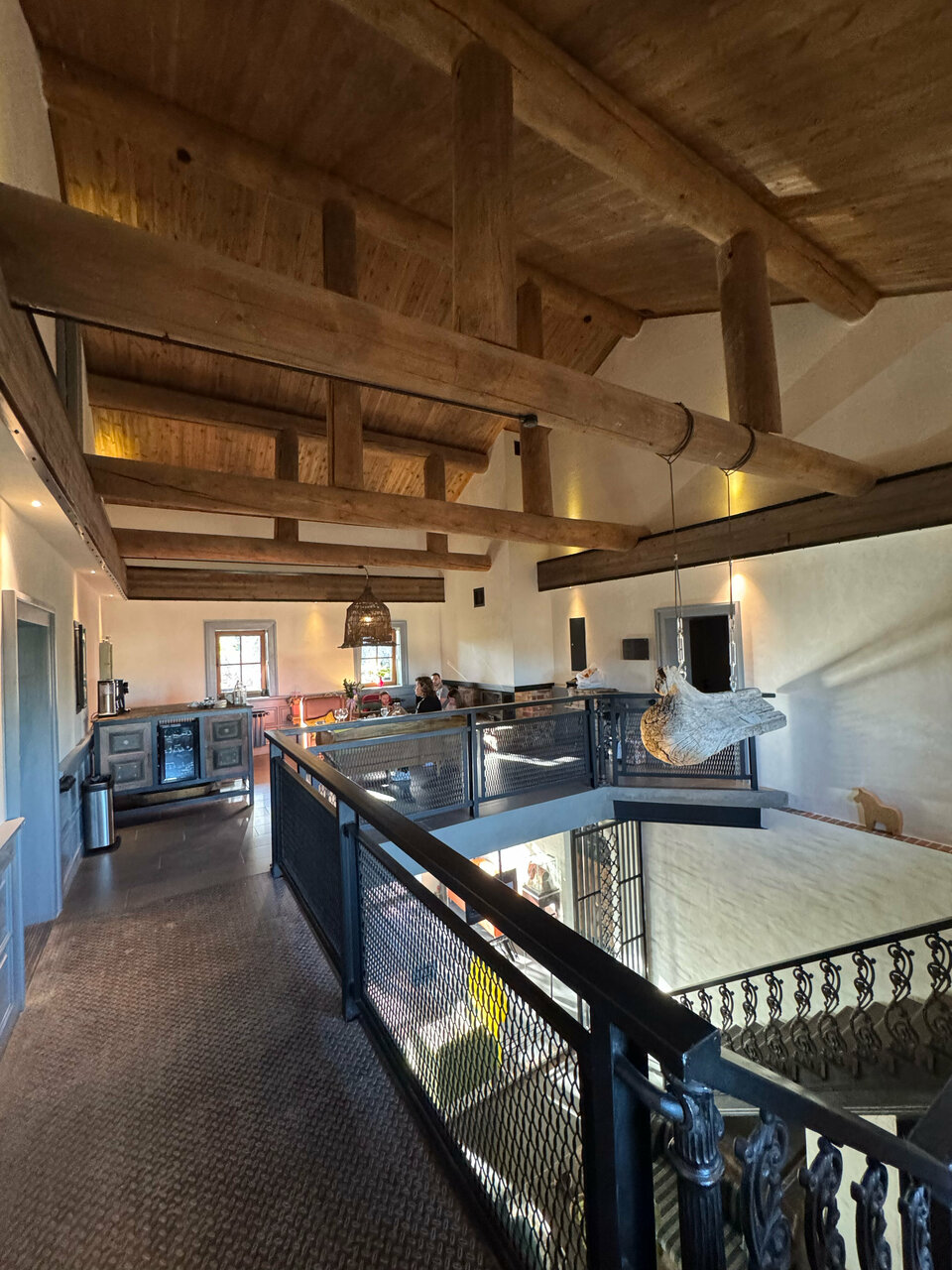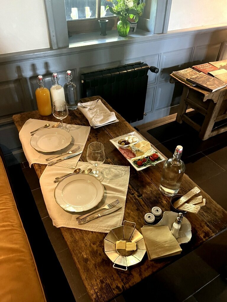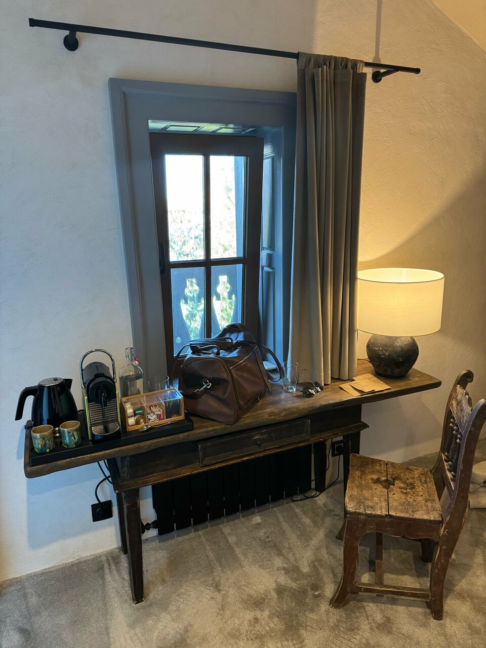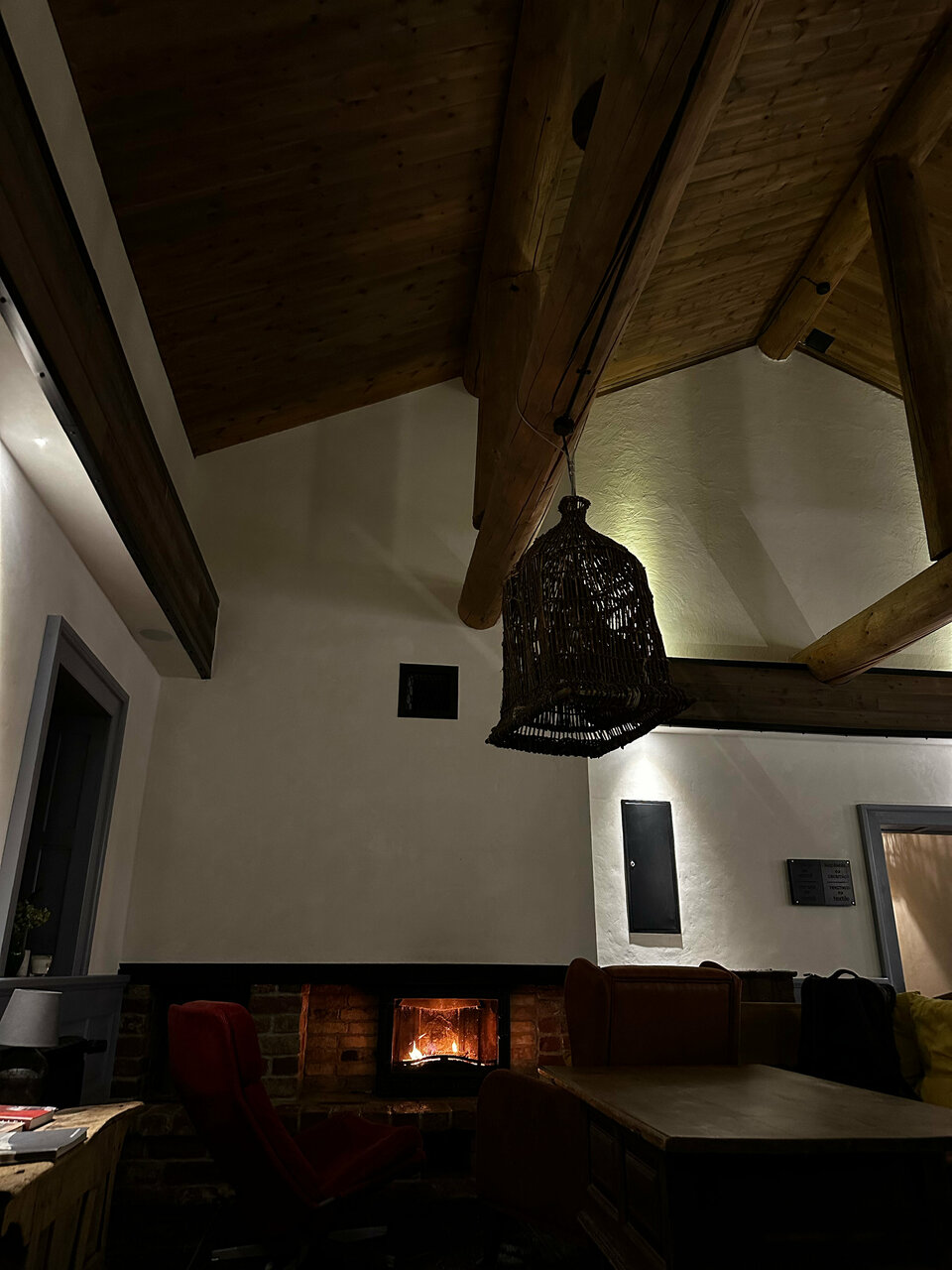очень классные интерьеры комнат и отеля в целом, вкусный завтрак у камина. тут же небольшой музей. не хватает времени работы ресепшена. самостоятельное заселение не сложное, но произошла накладка, пришлось ждать пока решится вопрос доступа в комнату. с парковкой было сложно из-за ремонта рядом. обидно что за все неудобства даже не предложили бесплатное посещение музея