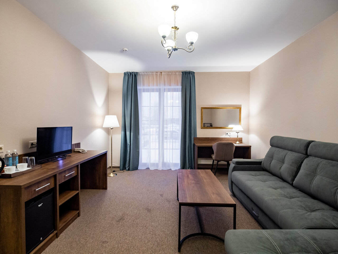 Отличный современный номер. В номере чисто, мыло шампуни полотенца, кондиционер, телевизор, чайник, холодильник с минибаром, без спиртного. Недостаток не работает ресторани вид из окна на любителя.