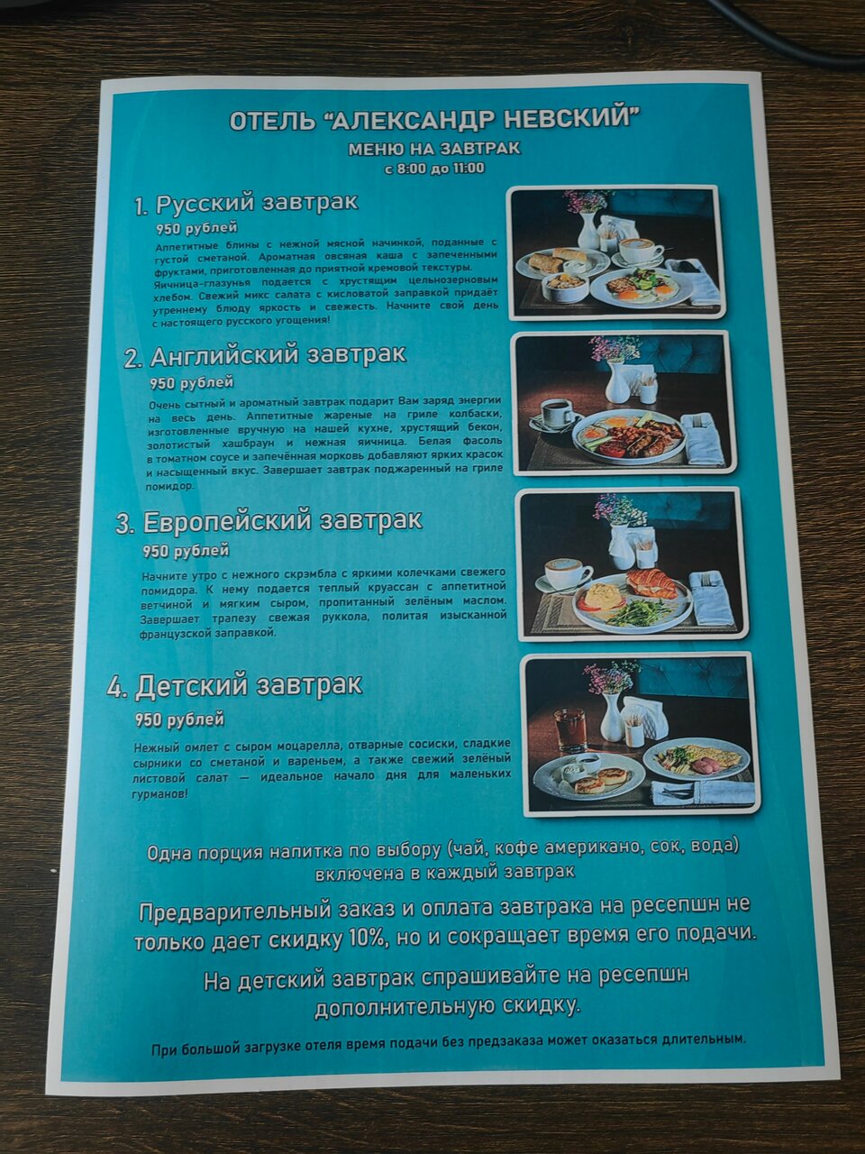 - Отсутствие завтрака (пришлось завтракать бутербродами)