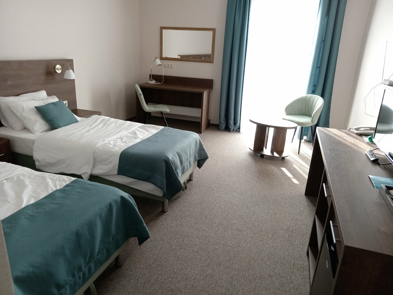 Хорошая гостиница, чистая , новая , номера отличные, персонал вежливый, ресторан прекрасный! Все красиво в бирюзовых оттенках! От отеля все близко