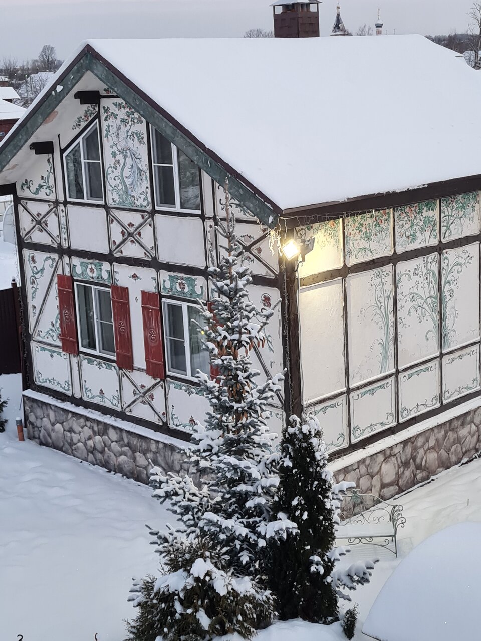 Очень вежливо, уютно, красивый обустроенный дворик с мангалом и детской площадкой. Уборка, завтрак по заказу. Автостоянка платная во дворе на 2 машины, за воротами — бесплатная на 5 машин. Через дорогу есть стоянка монастыря. Стоянки освещены