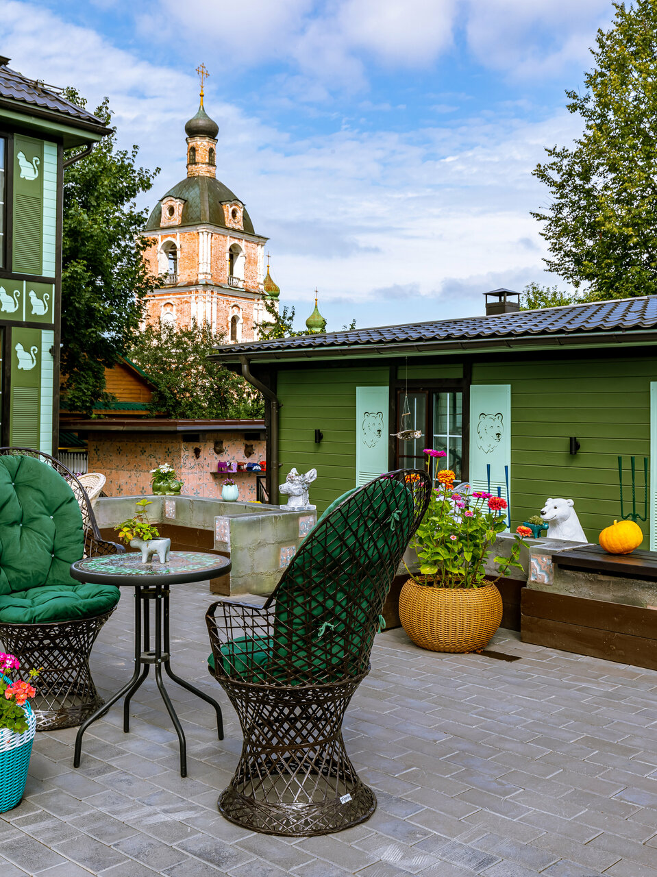 - Оригинальные дизайнерские решения на территории.