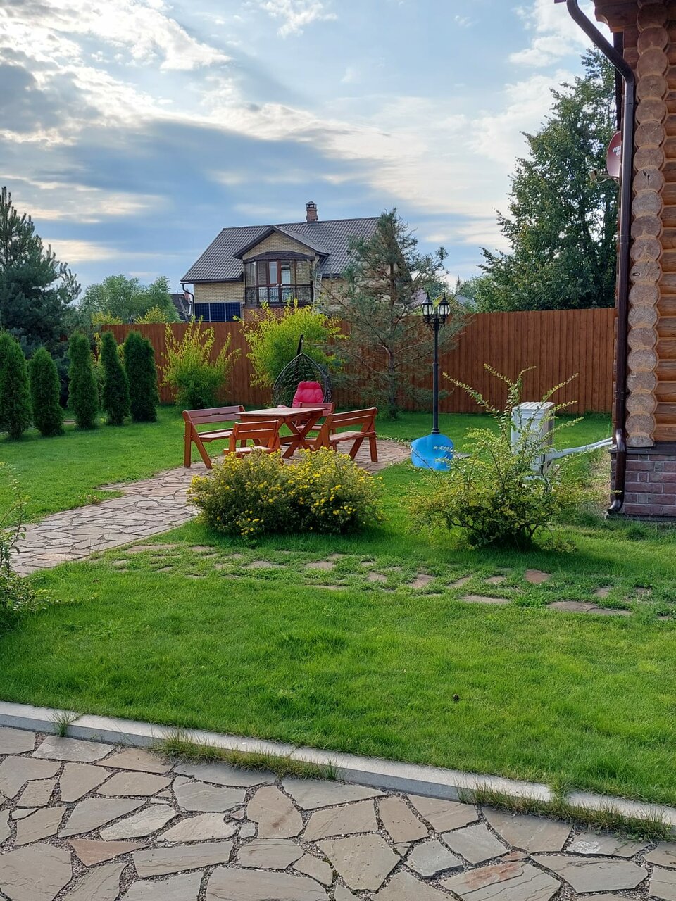 - Хорошая территория (качели, столики для пикника, мангал).