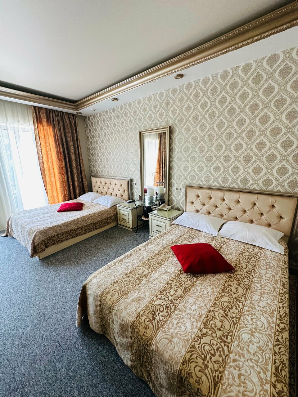 - Комфортные номера с хорошим оснащением (ТВ, кондиционер, фен, полотенца, тапочки, набор для душа).; Возможность заселения поздно ночью.; Бесплатный вкусный и разнообразный завтрак.; Хорошее оформление интерьера (царский стиль).; Чистота и уют в номерах.