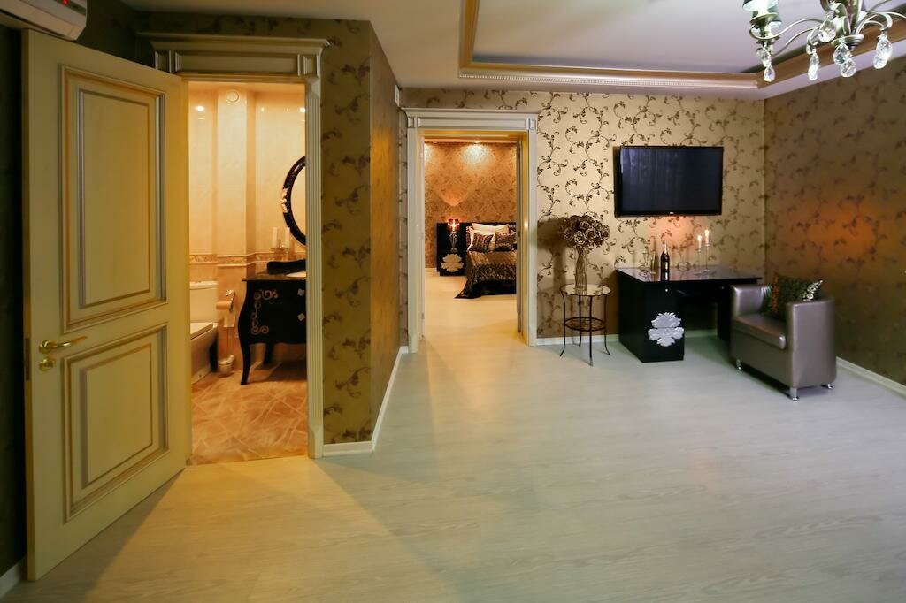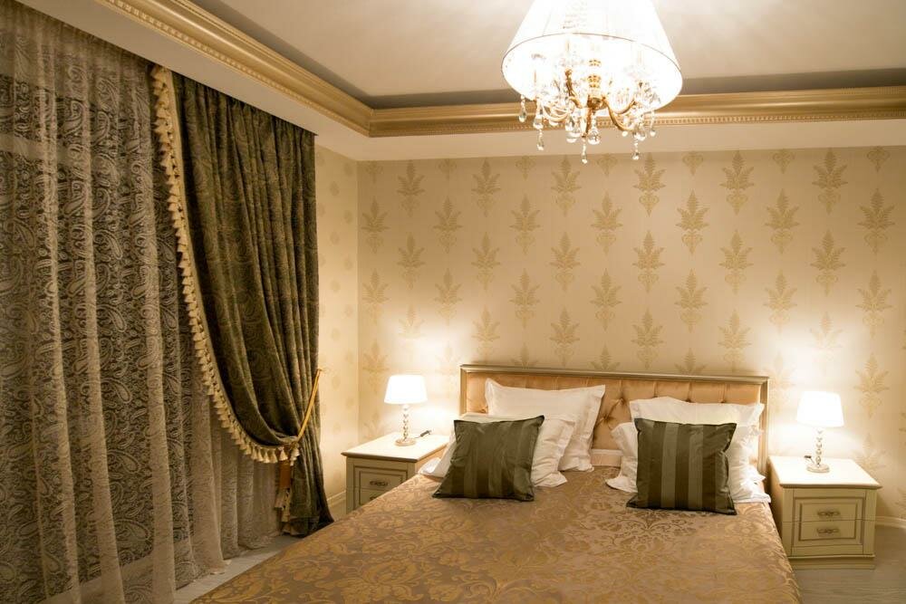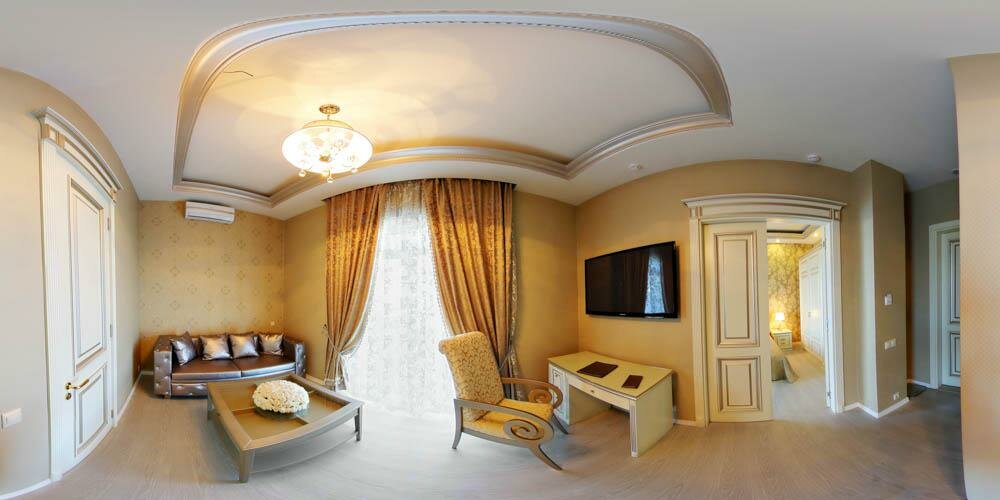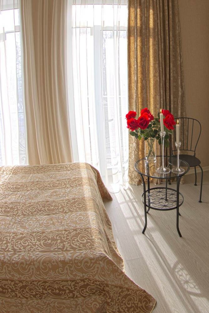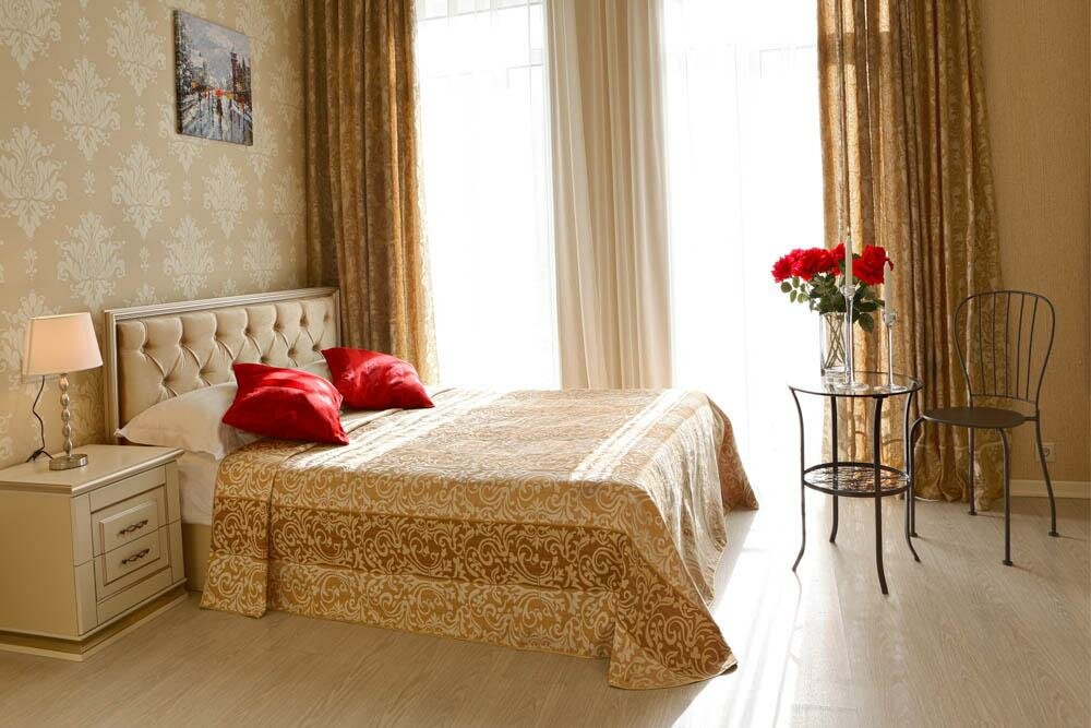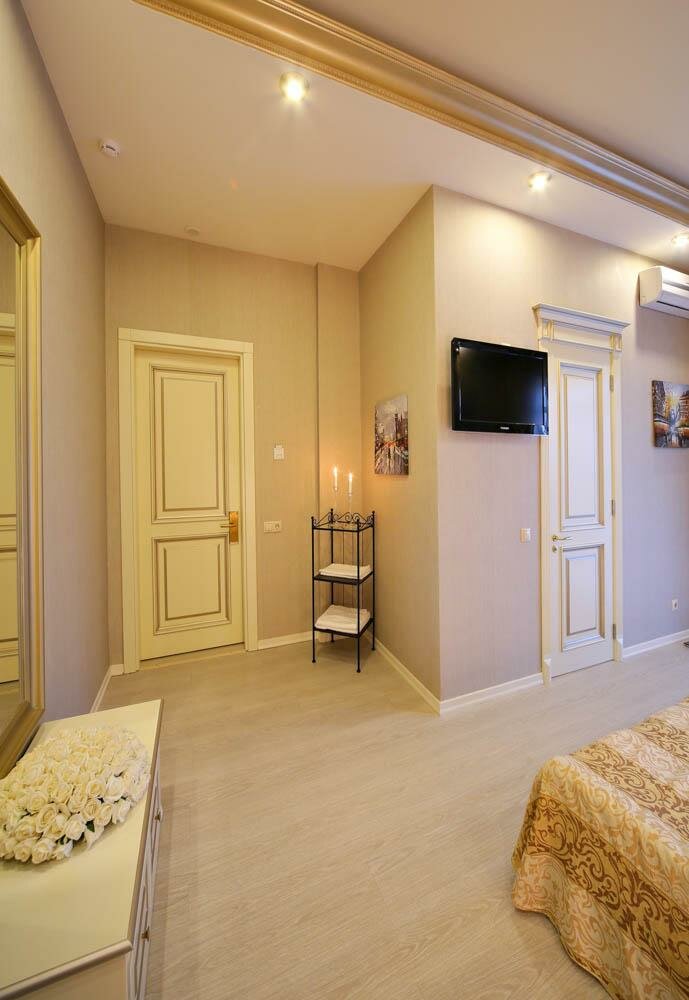 Искусно оформленный просторный номер.В номере спальня с двуспальной кроватью, ванная комната с душем.