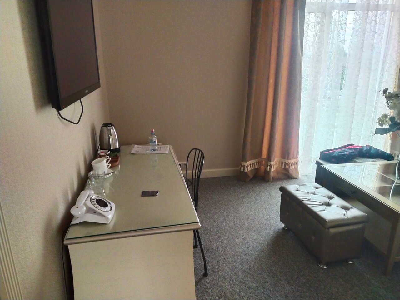 Пришлось снять номер, так как другие гостиницы были заняты. За номер бизнес класс заплатили 6400. Веселились в 20.30 вечера, а в 12.00 дня нас попросили съехать. Номер чистый, очень понравился.