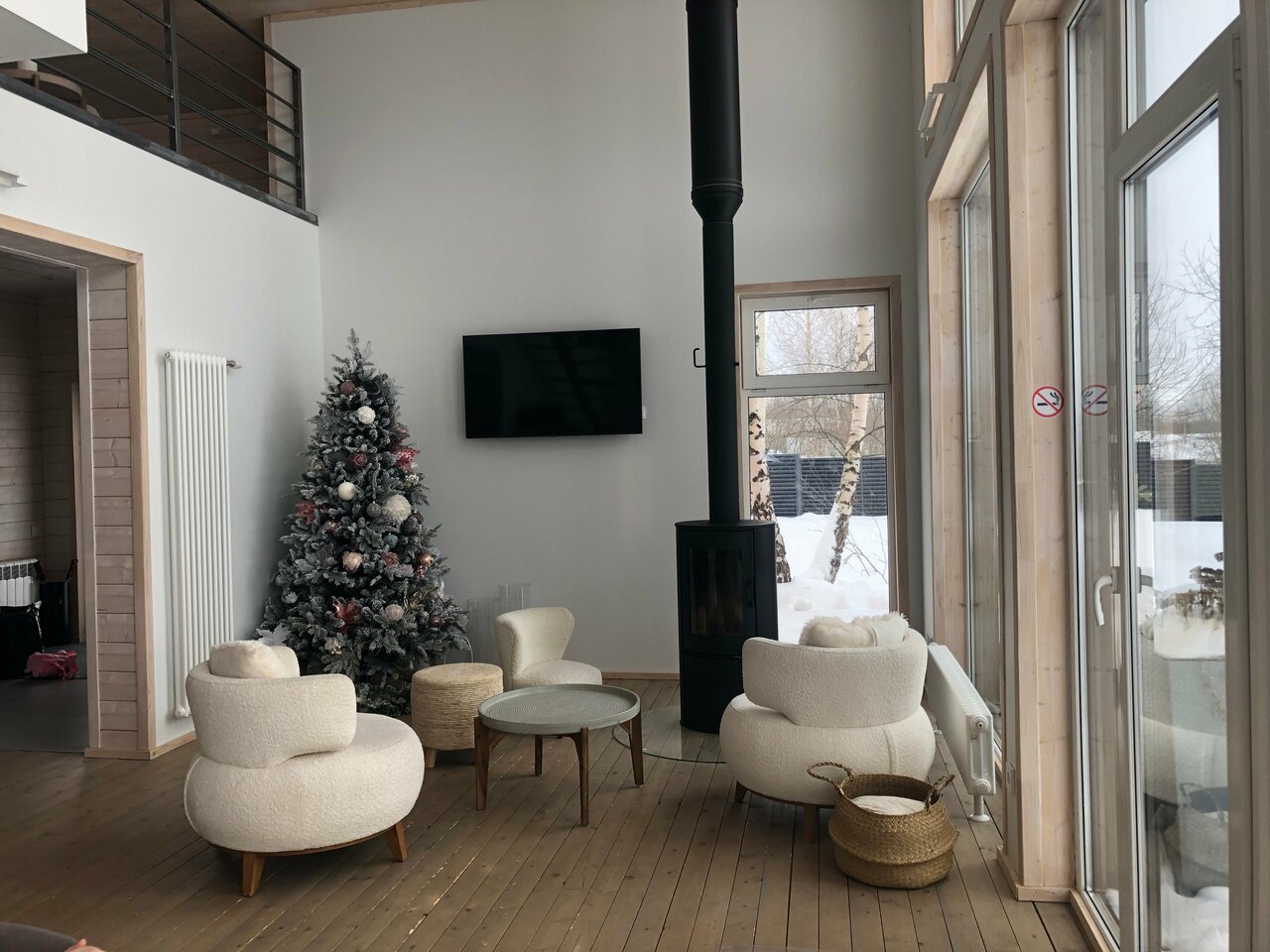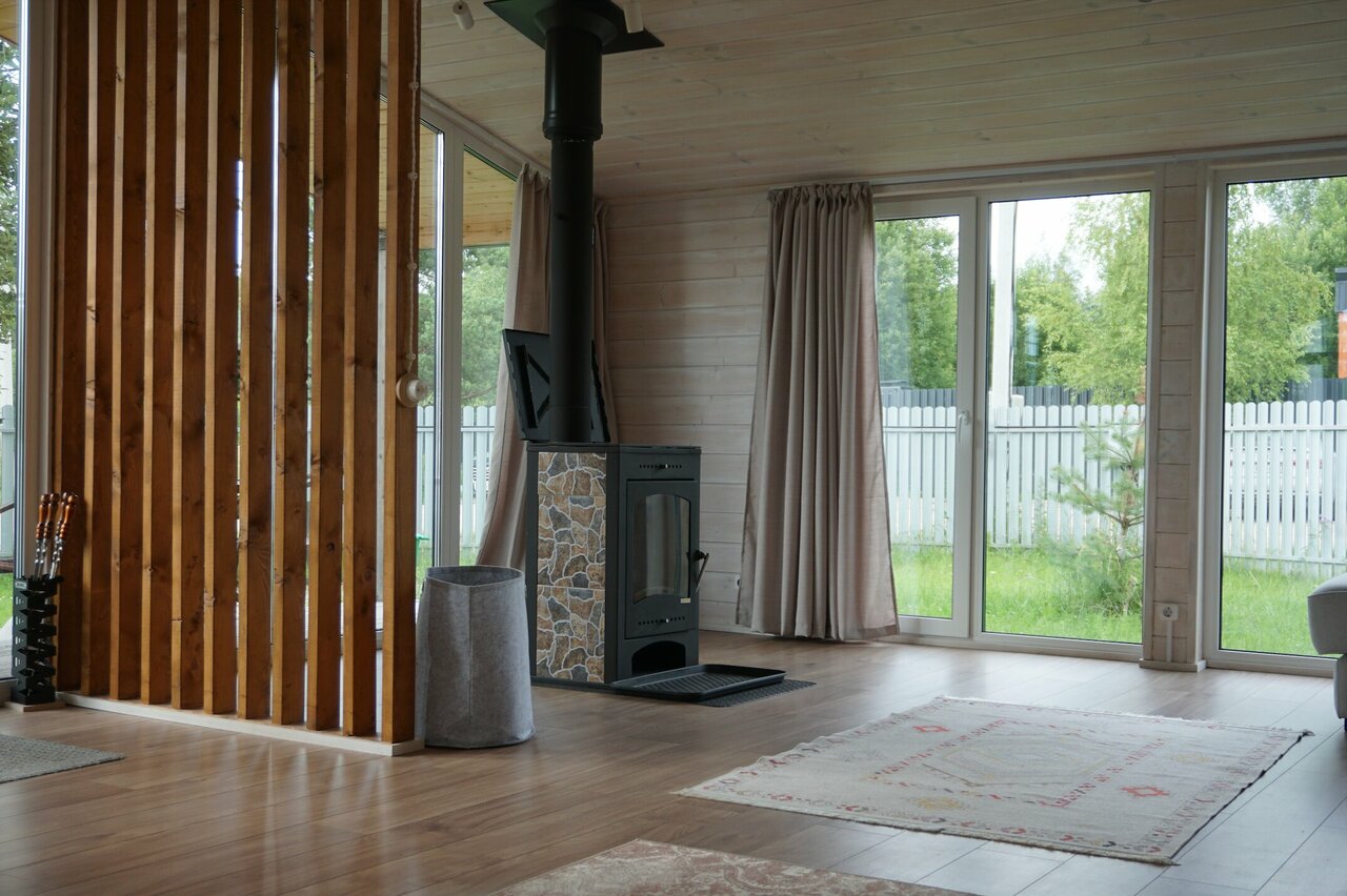 90 м2, 2 спальниАрендуйте этот уютный прекрасный дом в стиле американского сельского дома и получите уникальную возможность насладиться комфортом и уединением, а также расслабиться в собственной сауне.
