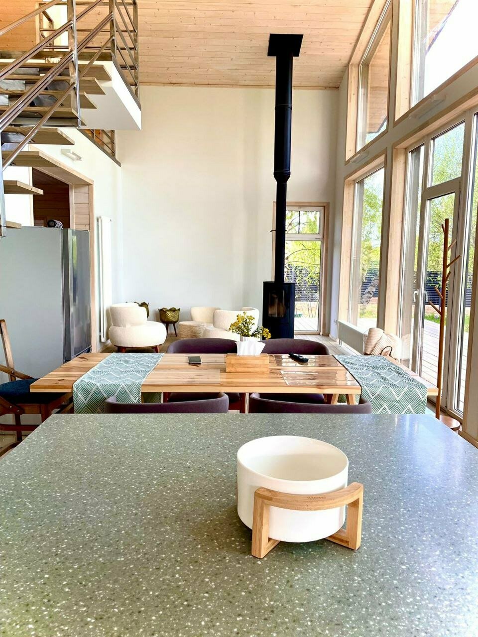 50 м2, 2 спальниАрендуйте уютный дом с панорамным видом на озеро и наслаждайтесь красотой природы.