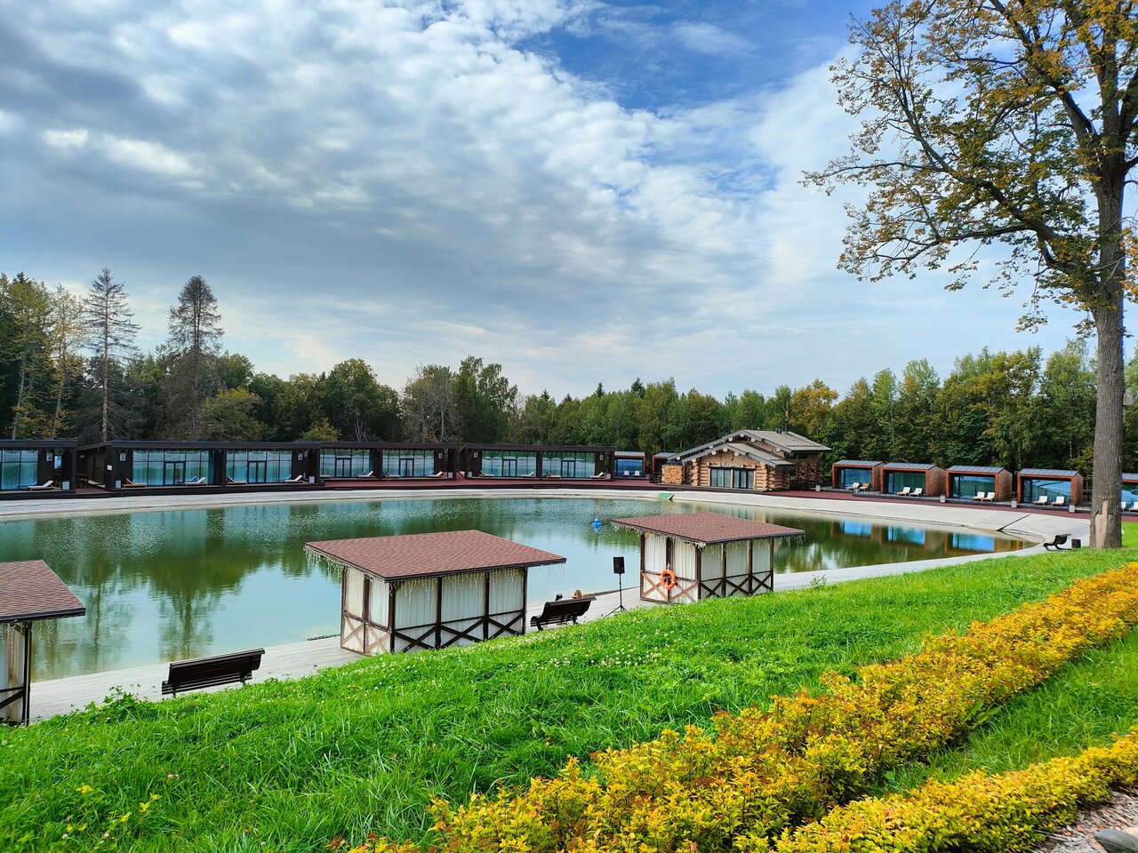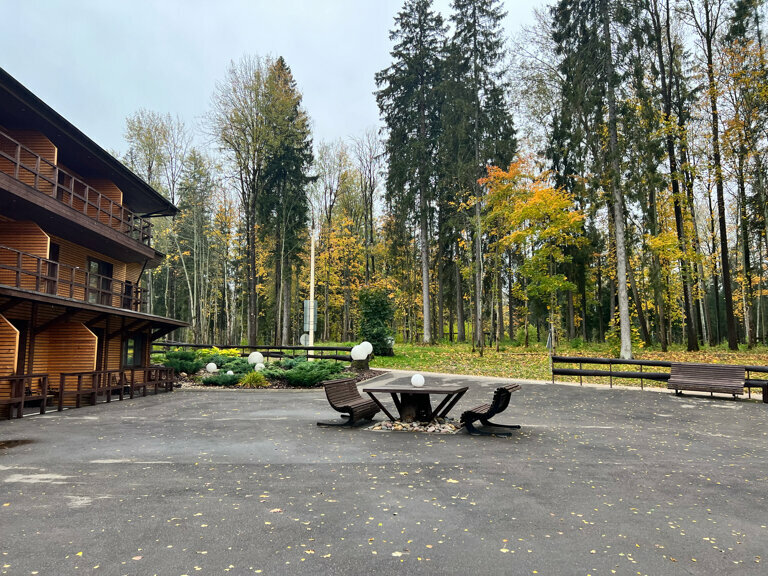 Замечательный отель, с огромной территоррии в лесу. Все продумано до мелочей, чистота, везде чувстуется хозяин, рабочие везде что- то убирали, чистили строили на территории. Глаз радовался)) Номер снимали в корпусе Спа, вид из окна отличный, пение птиц и зоопарк в лесу, выход на террасу. Плавали в бассейне, катались на велосипедах, гуляли в лесу. Скучно точно не будет, кто хочет уехать от городского шума. Еда вкусная, были в нескольких ресторанах на территории. Понравилось все!!! С удовольствием приедем снова. Успели прокатиться на экскурсию в Сергиев пасад.