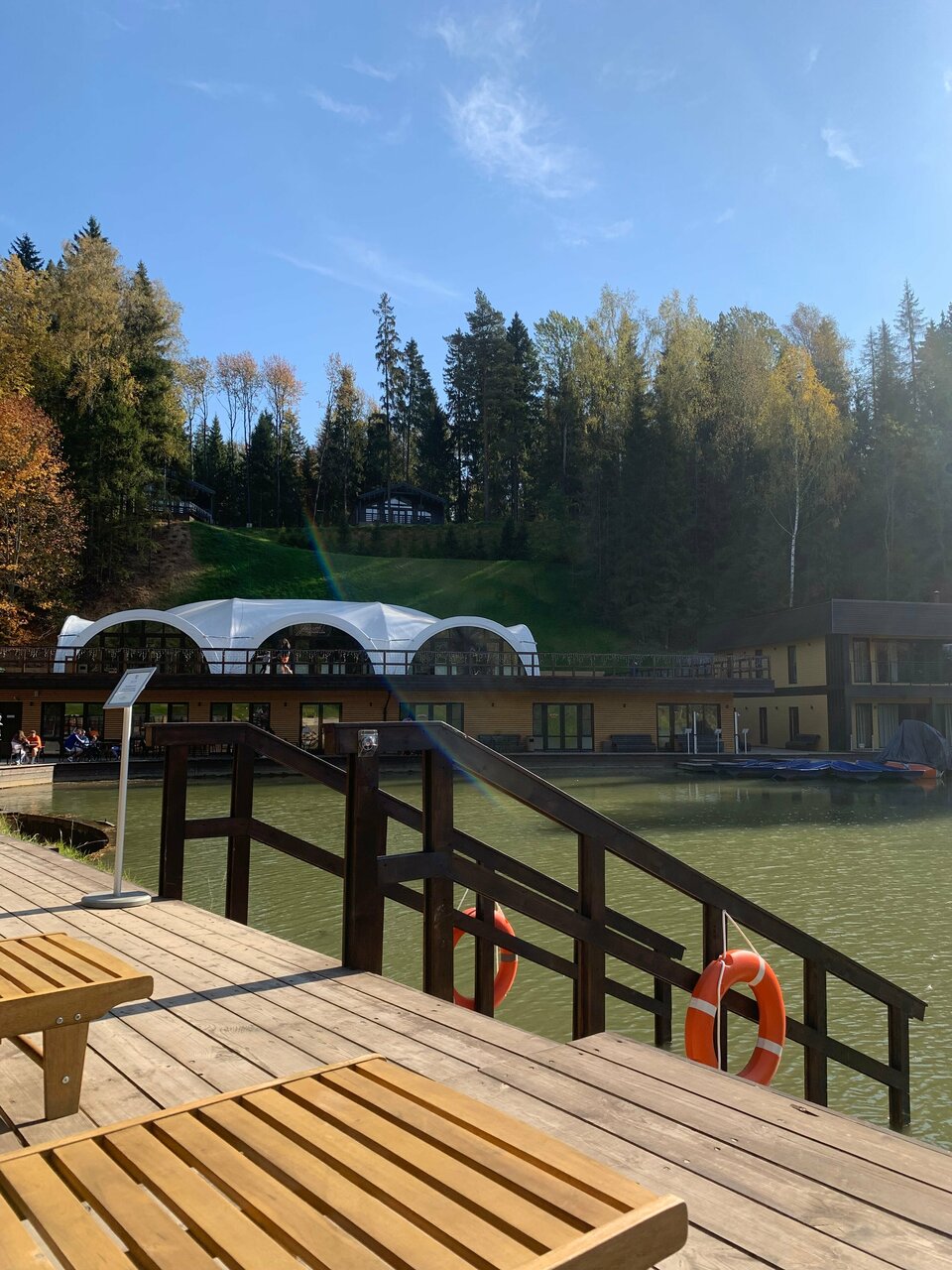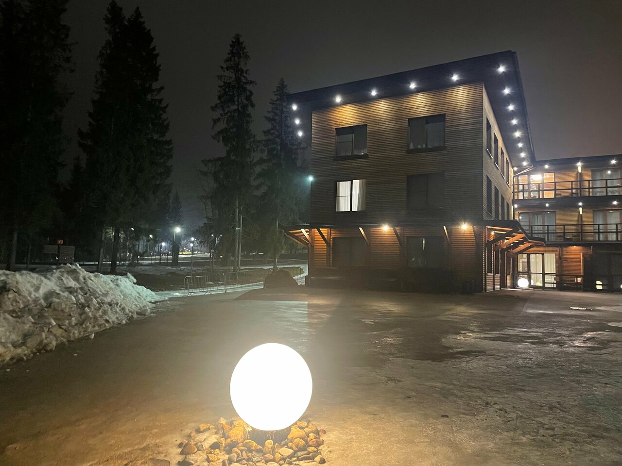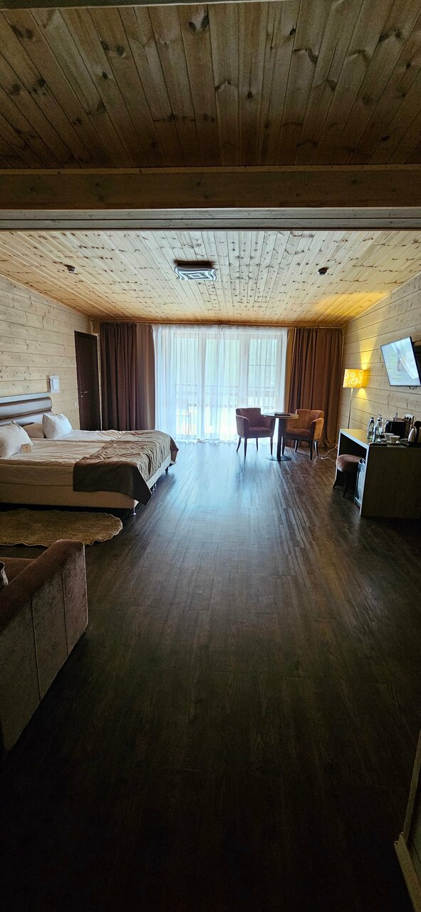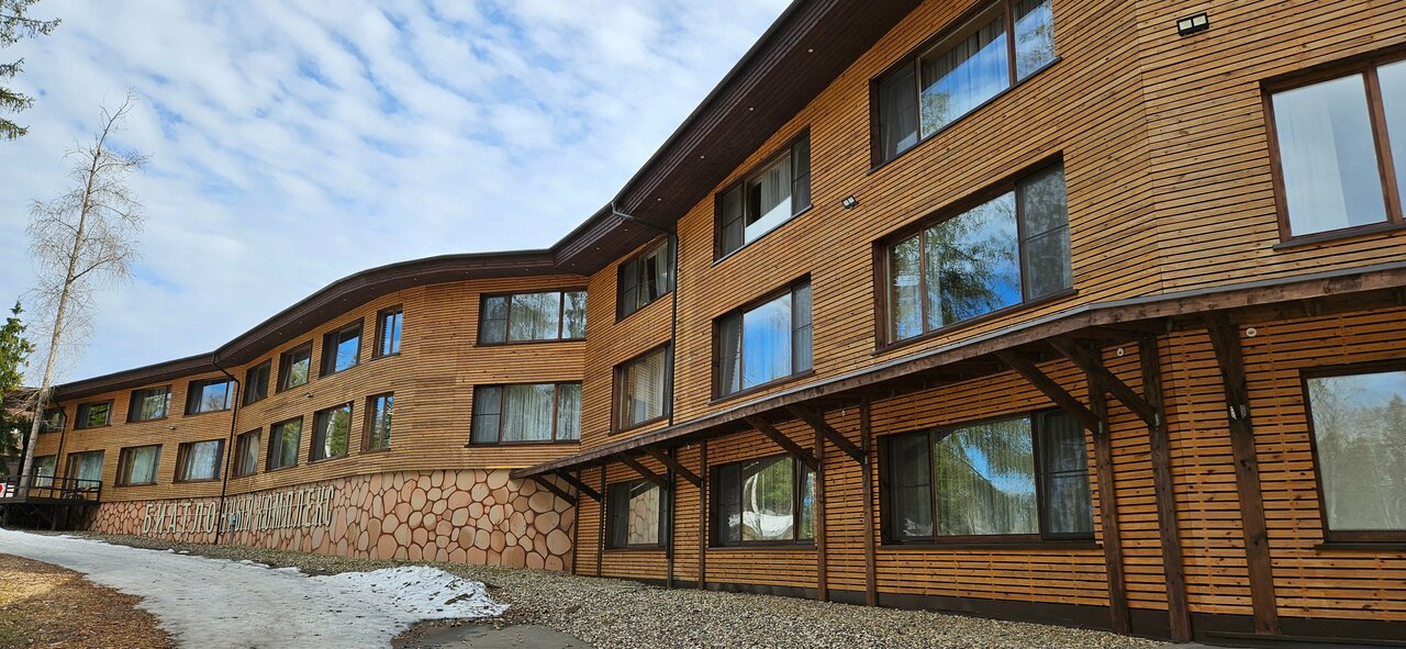 Находится в стороне от основных корпусов. Огромные номера в эко-стиле. Балконы с креслами, где можно посидеть и послушать лес. Идеальное место для восстановления сил!