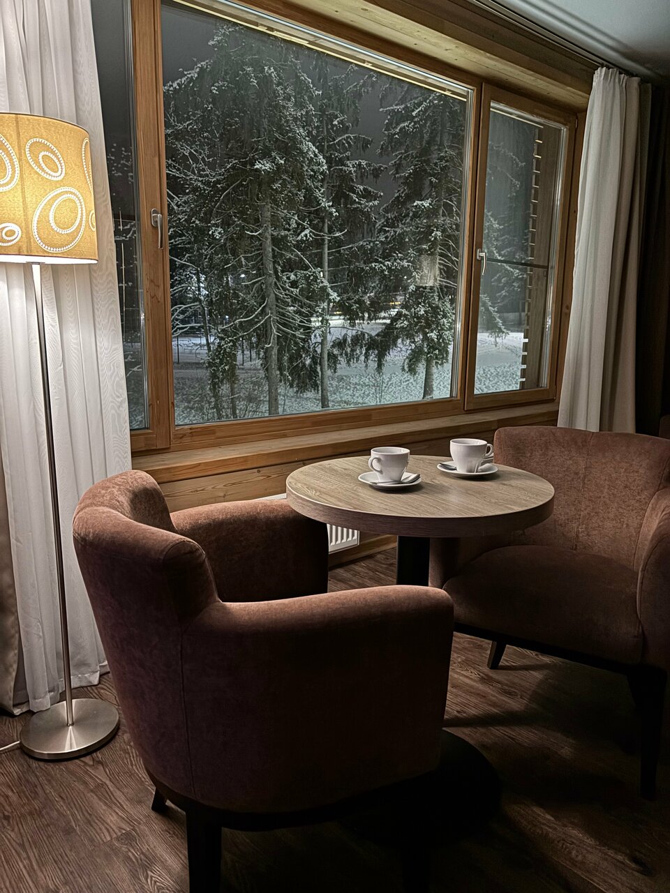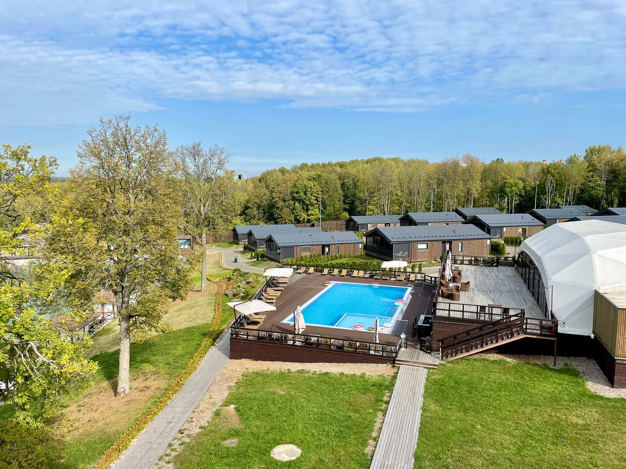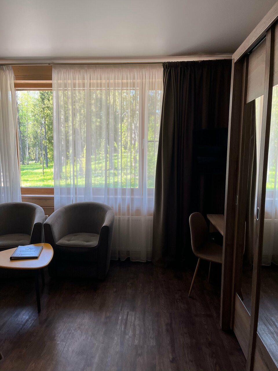 Находится в стороне от основных корпусов. Огромные номера в эко-стиле. Балконы с креслами, где можно посидеть и послушать лес. Идеальное место для восстановления сил!