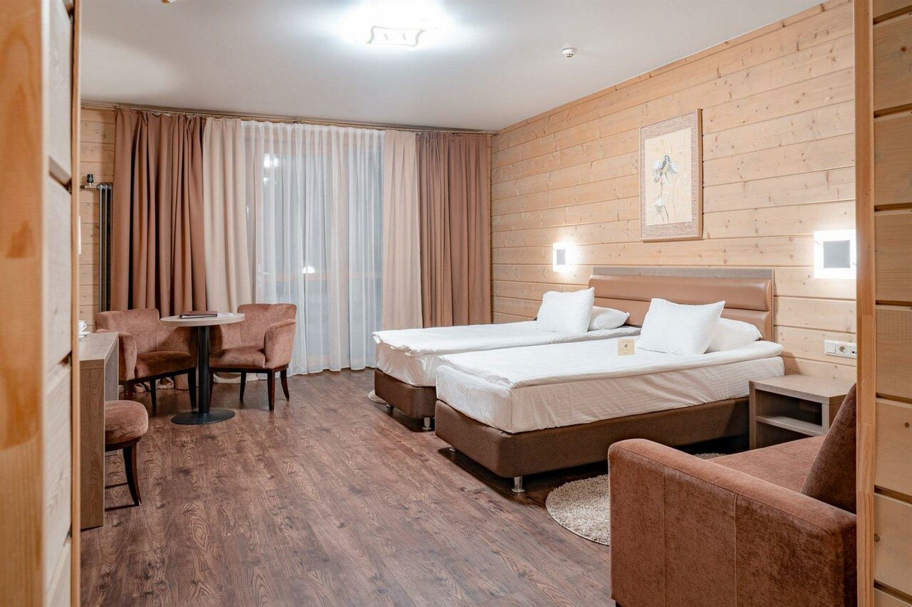 Великолепный отель Атмосфера полного релакса Сосновый бор много спокойных местечек и прогулочных маршрутов великолепный бассейн Инфинити а всего три бассейна купаться можно бесконечно Всегда чистые номера Вкусные завтраки каждый найдет занятие по душе деткам и веревочные парки и зоопарк и детская комната Всегда приезжаем с радостью и уезжаем с великолепным настроением гибкая политика скидок