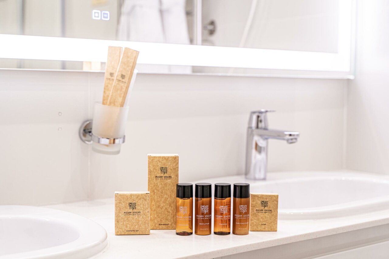 Гостиница предлагает комфортные номера с кондиционером, звукоизоляцией, Wi-Fi и санузлом, включая гипоаллергенные варианты. На территории: крытый и открытый подогреваемые бассейны, оздоровительный центр (спа, сауна, хаммам, массаж), ресторан, кафе, бар, ледовый каток, теннисные корты, детский клуб и анимационные программы.