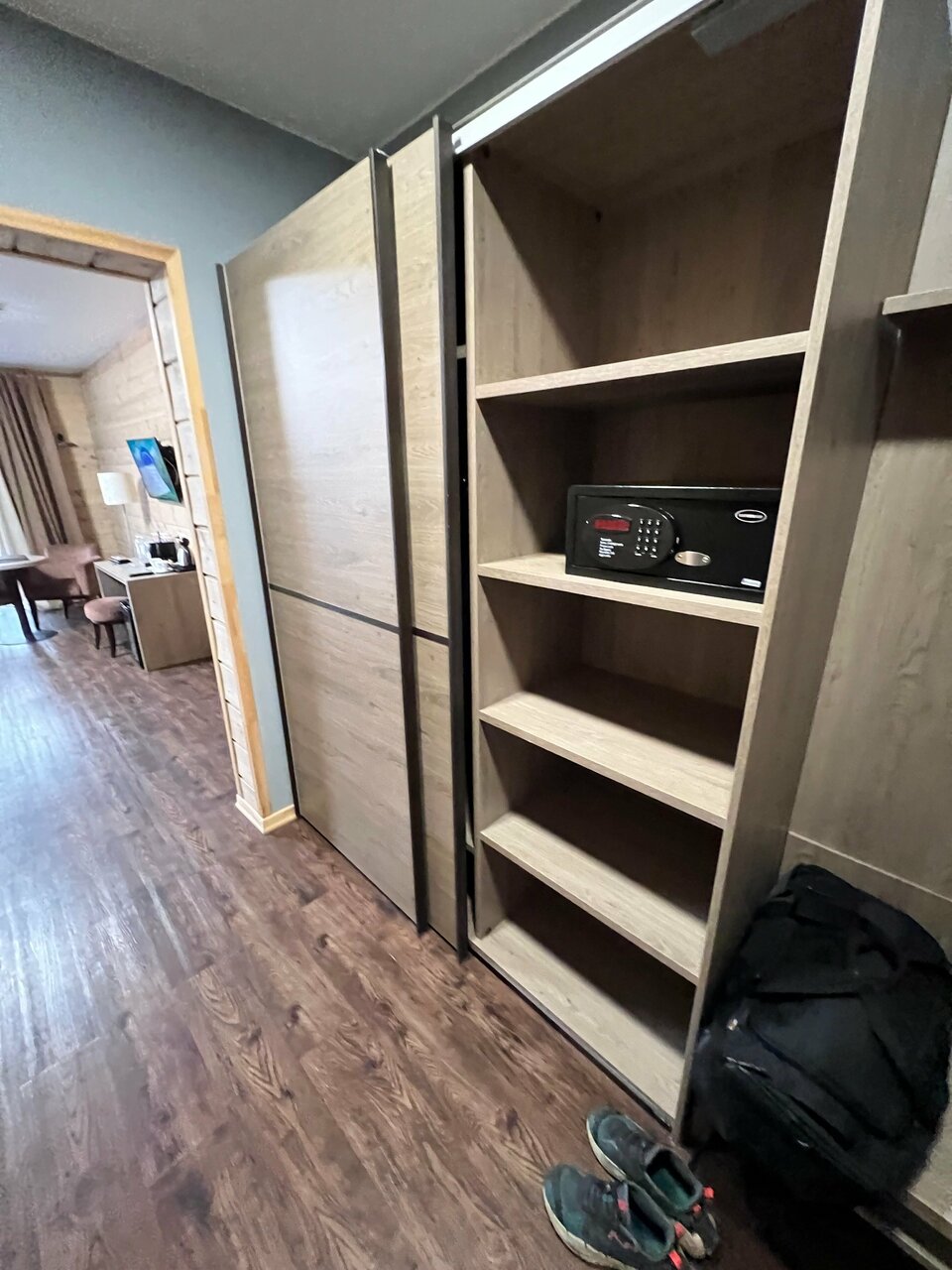Минус в том, что купили двухместный номер, а заселили в одноместный. Кровать на двоих 140 см, один стул и маленький шкаф. Хотя по нормам отелей четыре звезды полагается кровать в двухместном номере не меньше 160 см…