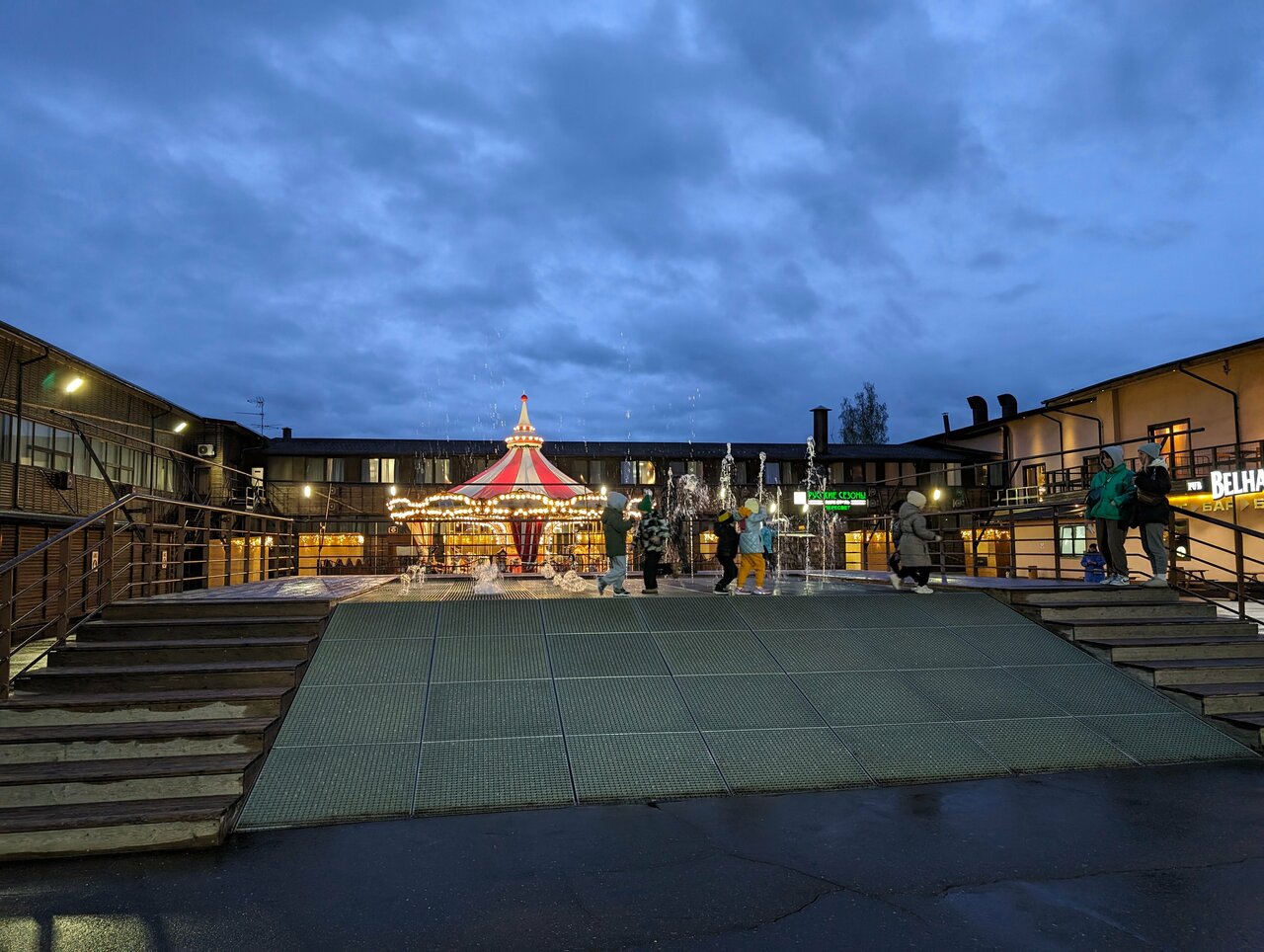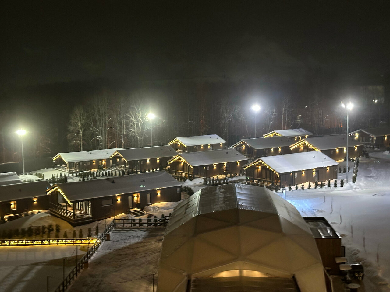 - Большая и красиво освещённая территория.