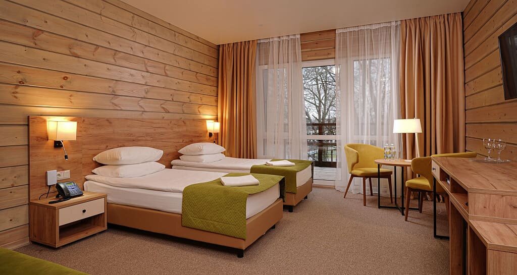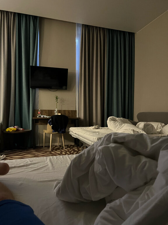 Начнем с плюсов: большая территория, персонал замечательный, все приветливы и любезны, очень вкусные рестораны. Из минусов: нет информации о работе объектов. Хотели в вечер заезда зайти в паб, он оказался закрыт на спецоборудование, о чем не было известно заранее. Аналогичная ситуация была с ‘Щелкунчиком’ на следующий день. В бассейне конгресс отеля не было доступных полотенец, как и браслетов от шкафчиков в спа-отеле. Все это заставляло по несколько раз в день менять планы. Ситуация решилась бы простым информированием в ТГ канале, который существует, но почему-то не отражает положение дел. Также слышимость в номере оставляет желать лучшего, возможно такой номер только у нас(около лестницы), но до глубокой ночи слышно всех проходящих мимо.