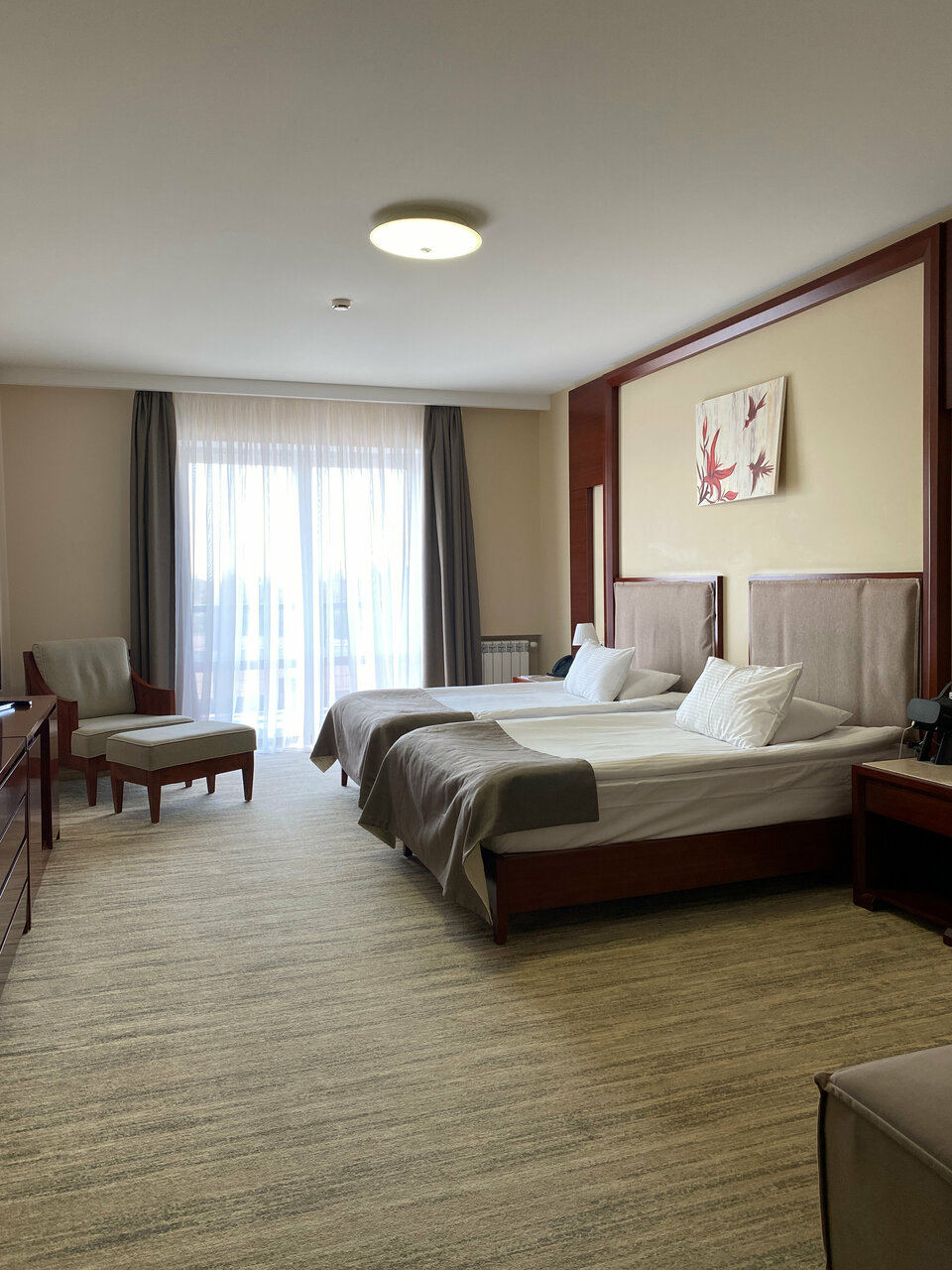 Приятный отель, не самый бюджетный, но все же. Огромный плюс — между всеми корпусами можно ходить по внутренрим переходам, что особенно актуально с детьми в холодное время года при посещении бассейнов. Большая территория позволяет хорошо погулять на природе.