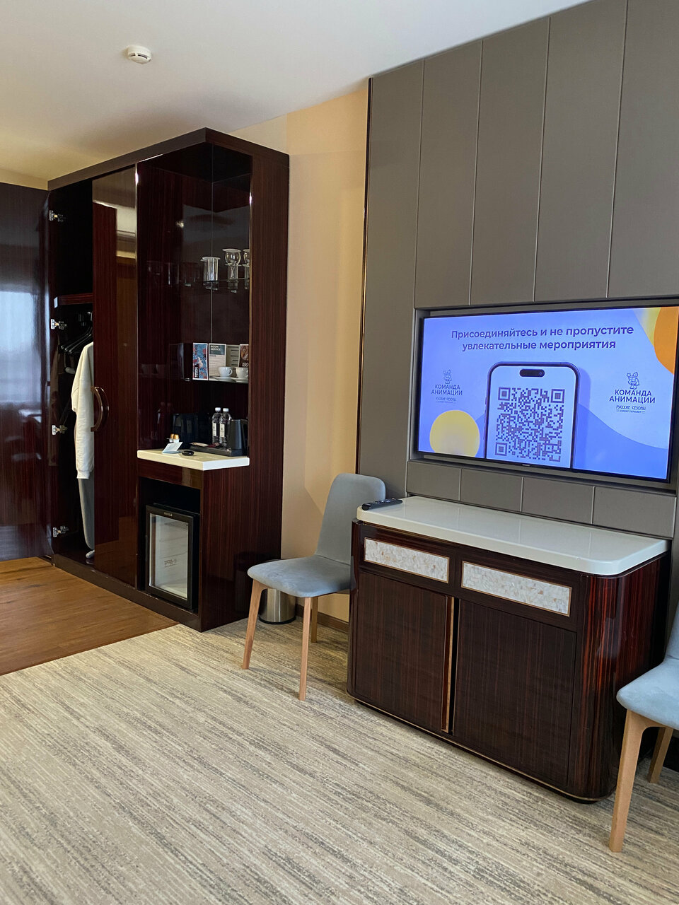 Работа сотрудников ресепшн, оставляет не самые приятные впечатления, особенно хочу отметить администратора Анну. Администратор позволяет себе не кррректное общение с гостями, на все вопрос в части помощи у неё ответ ‘ нет’. Может заселить в номер который уже занят или в котором очень плохо пахнет канализацией и Вы будете вынуждены ходить несколько раз до ресепшн, т.к. телефония в номерах не работает. Потраченное время на переселения никак не компенсируется, поэтому приезжая на пару дней, будьте готовы потратить 6 часов оплаченного Вами времени пребывания на перемещения с чемоданами. Навигация по территории отеля не лучшая, српровождающего не предоставляется, поскольку территория отеля большая, бегать вокруг него с чемоданами можно долго.