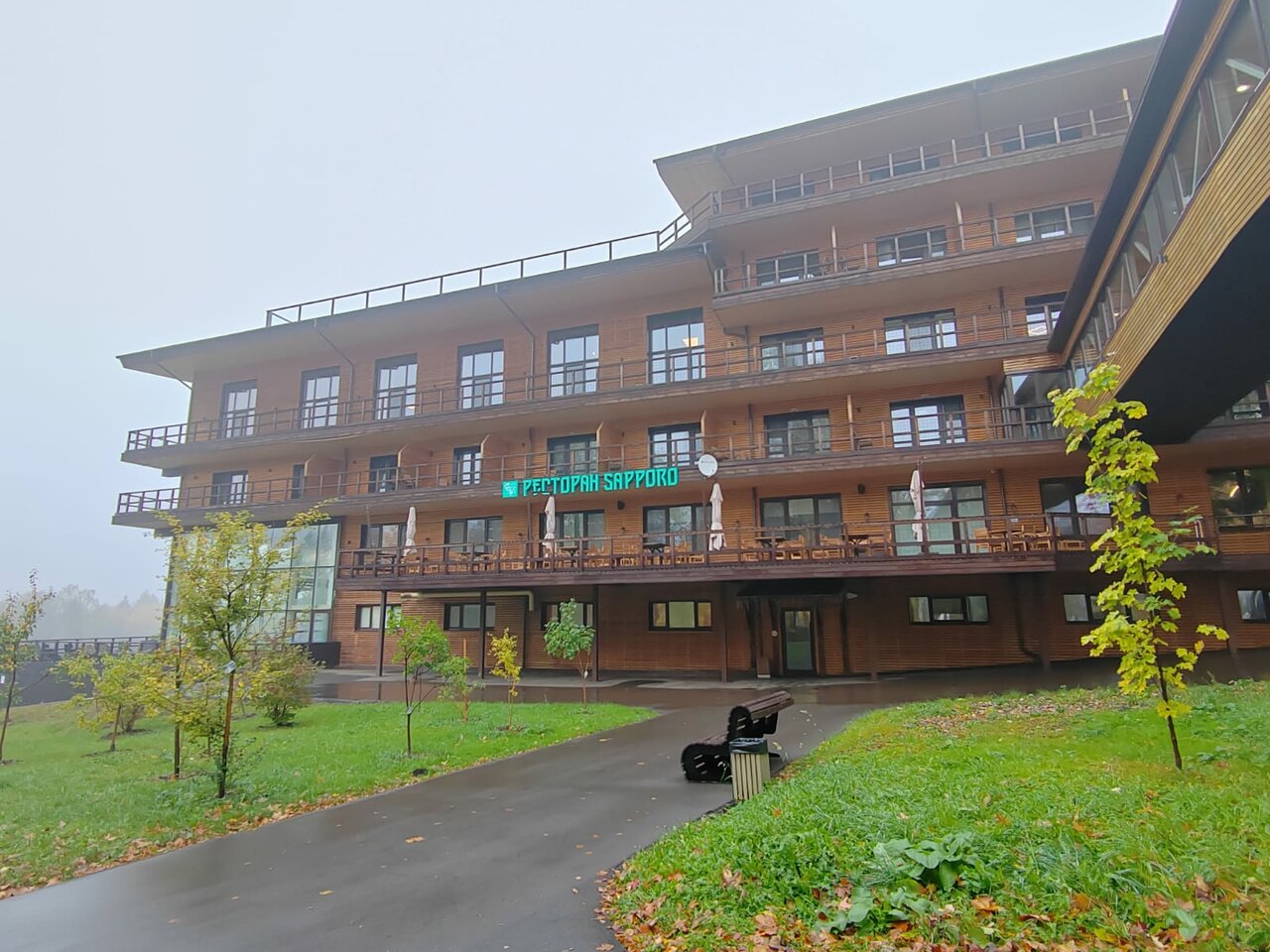 Там в корпусе нет бассейна, как на фото. Чтобы дойти до всех благ надо пройти весь посёлок и зайти на территорию Курорта. Спорт отель- не на территории!!!! Завтрак там свой и это не шведская. Два вида каши, сосиски вам выдадут , яйца и блинчики не больше 2 шт. Ощущение, что это здание бывшая общага. В номере нет ничего: фен, чайник, мыло, шампунь. Мы с удовольствием удрали от туда в Эко отель в 2 часа ночи.