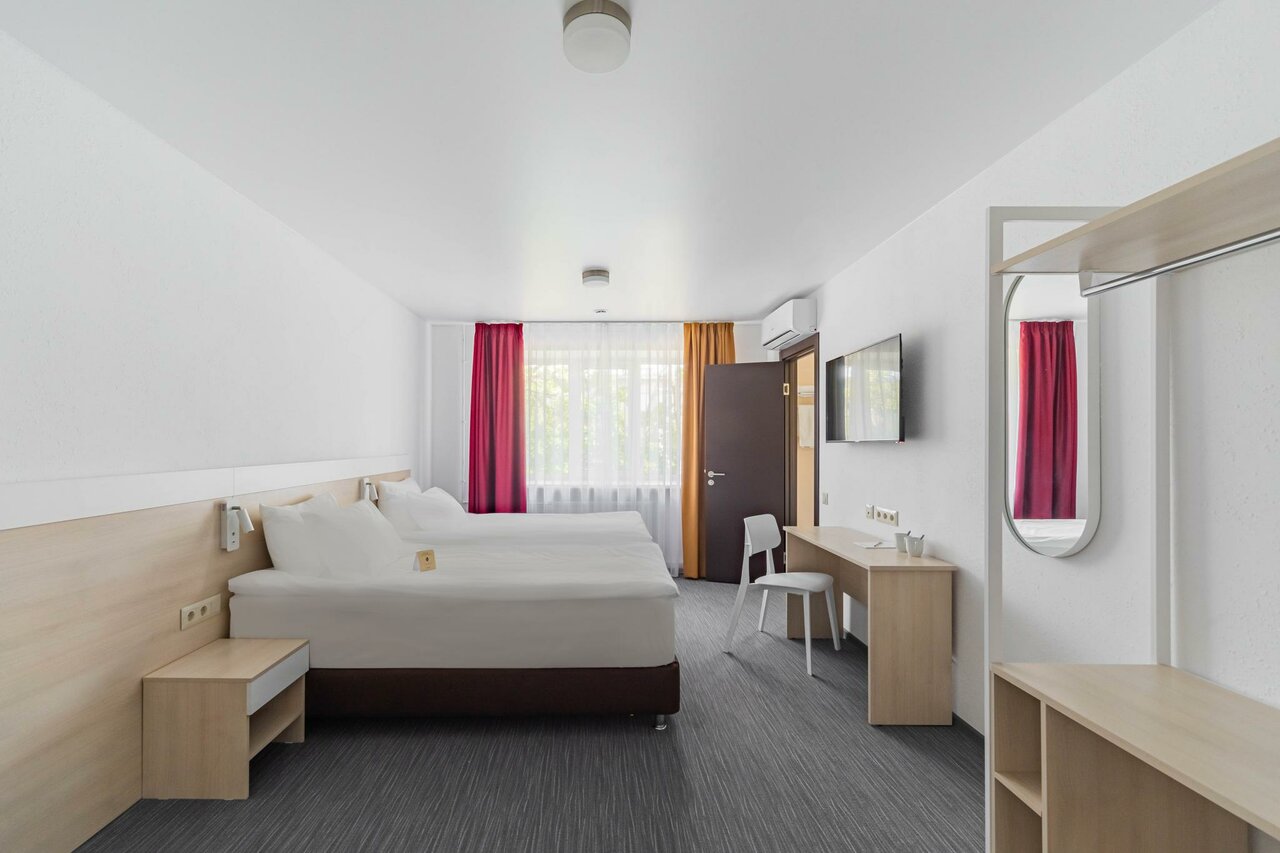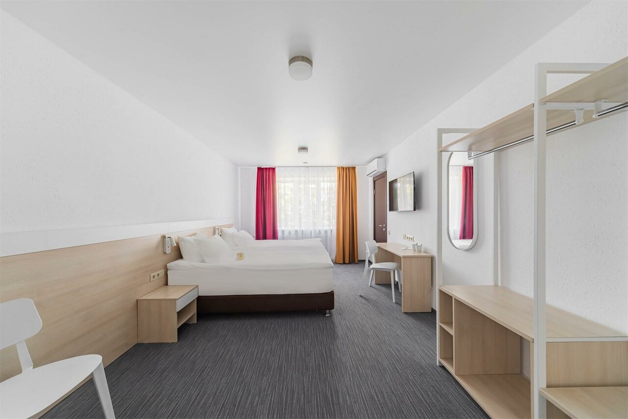 После суток отдыха в отеле комфорт из-за отсутствия номеров, нам пришлось заселится в спорт отель, цена за номер нам озвучена была 10120 руб. Из-за сложившейся ситуации, нам пришлось бронировать номер!после того, как мы приехали в этот замечательный отель, был шок!!!просто какое-то общежитие переделано под отель!в номере холодно, с окон дует, попытались включить кондиционер для обогрева комнаты, поняли, что он не работает!но самое интересно, мы заплатили за 3-х человек, а в номере 2 односпальные кровати!мы обратились к персоналу, попросили хотя бы одеяло и подушку, но нас просто отшили, сказав, ей ничего никто не говорил, все что есть в номере тем и пользуйтесь !Замкадыши, думают, что они в центре столицы живут!!!за такую сумму в Москве можно шикарный номер снять, с обслуживанием в разы лучше!!!даже 1 звезды много!!!