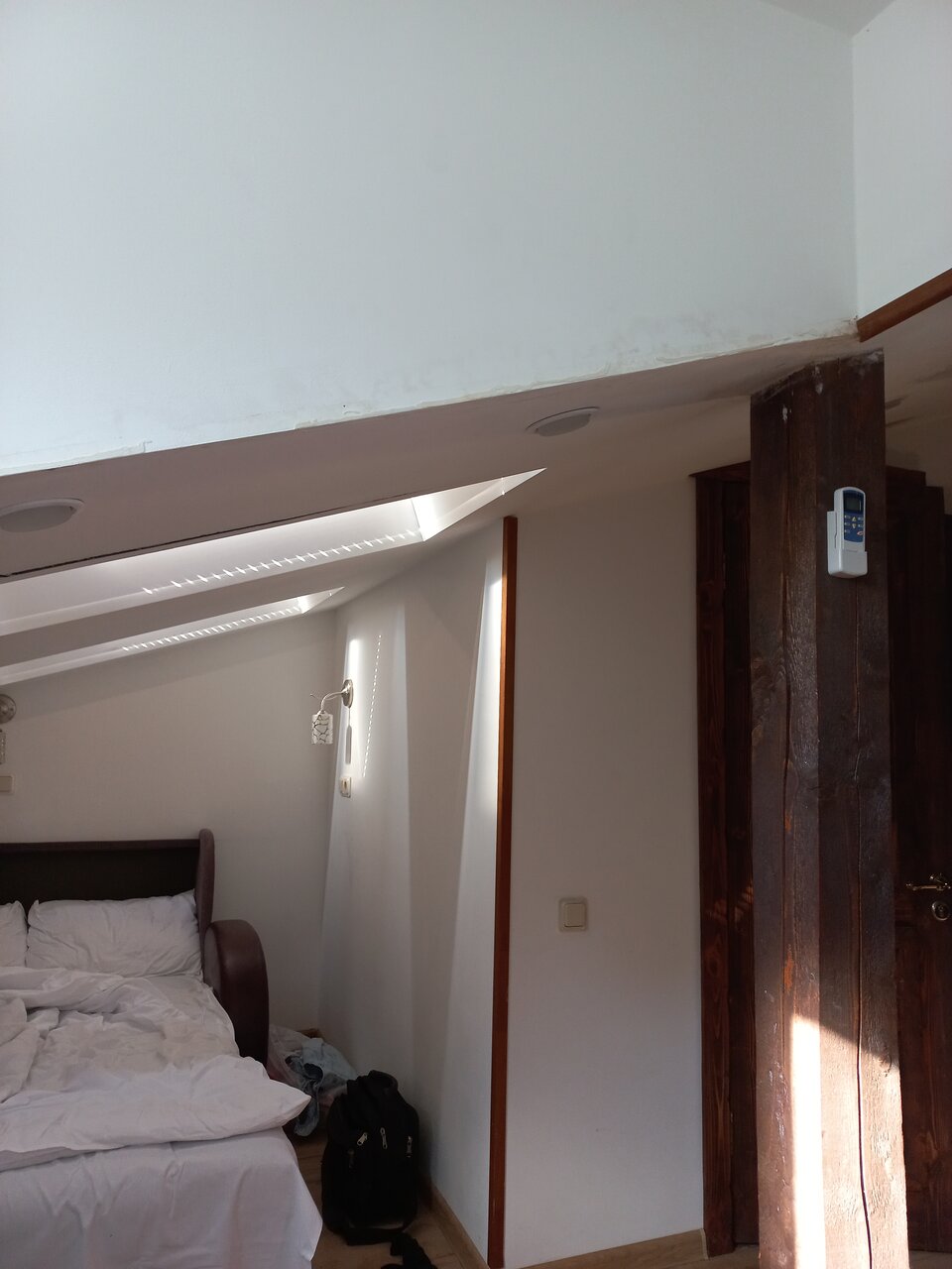 Хорошее расположение относительно достопримечательностей. Отель находится в здании военкомата. Мебель и оборудование номеров уставшая. Номера плохого убраны. Жили в мансардном номере, приходилось ходить согнувшись. На окнах нет сеток, залезает много ос. В номере было 2 осиных улья. Есть кондиционер, но сначала пришлось самим поменять батарейки в пульте, а потом обнаружилось, что он гудит, как 3 трактора разом! Никто его никогда не чистил и не ремонтировал…