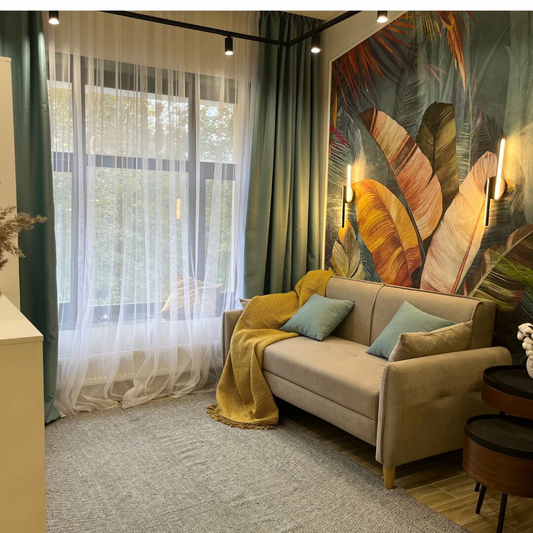 Очень тихое место с удобным расположением. Апартаменты безумно понравились. Чистота,уют, дизайн,есть всё необходимое.