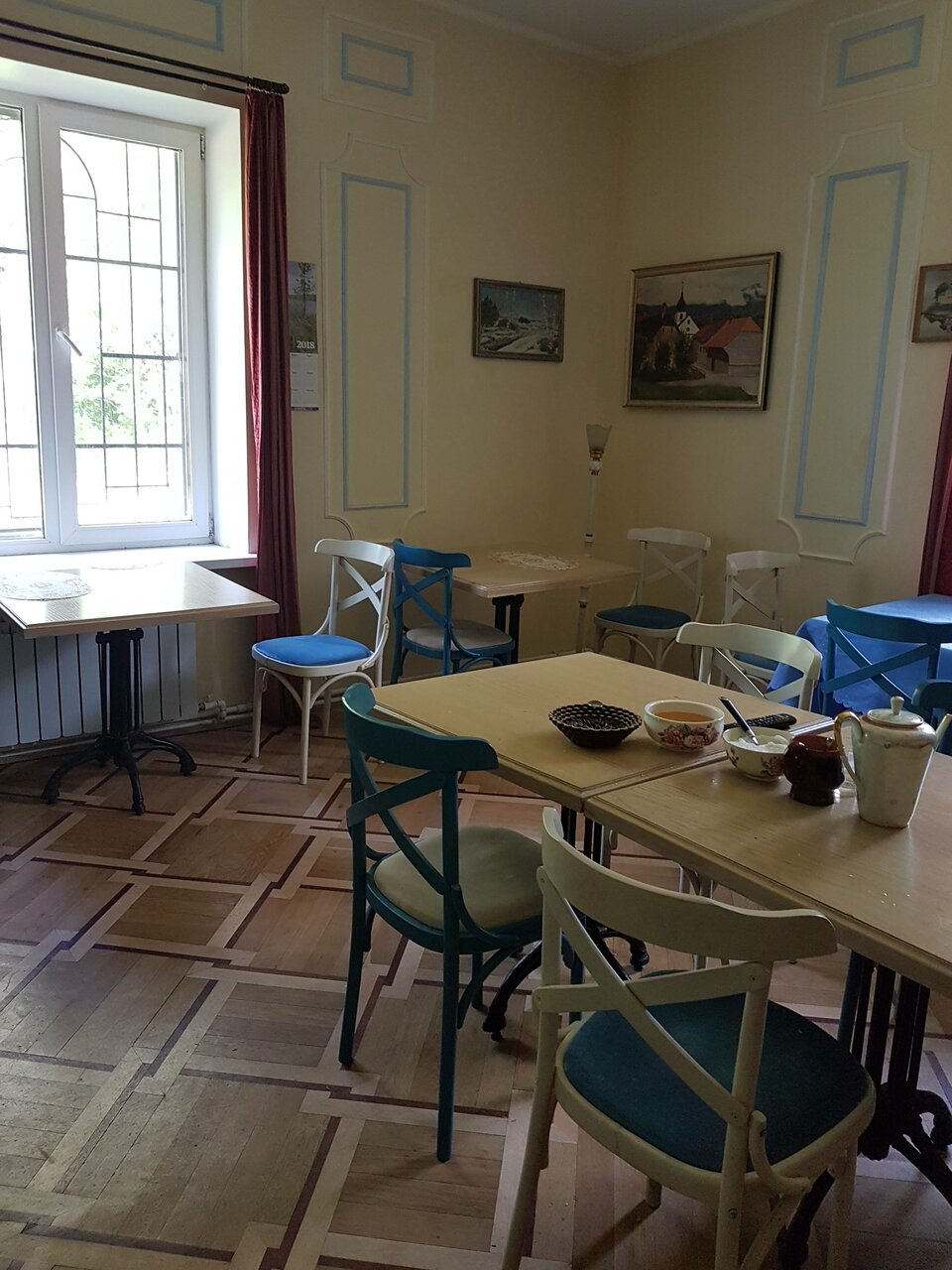 Место сказочное! Дубы, качели, кругом Дворцы, тишина… Интересный хозяин Номера не очень в плане чистоты и новизны мебели, но душ, туалет в номере, вода горячая сколько хочешь, телевизор со смарт тв, Интернет. Готовы пожертвовать комфортом — рекомендую!