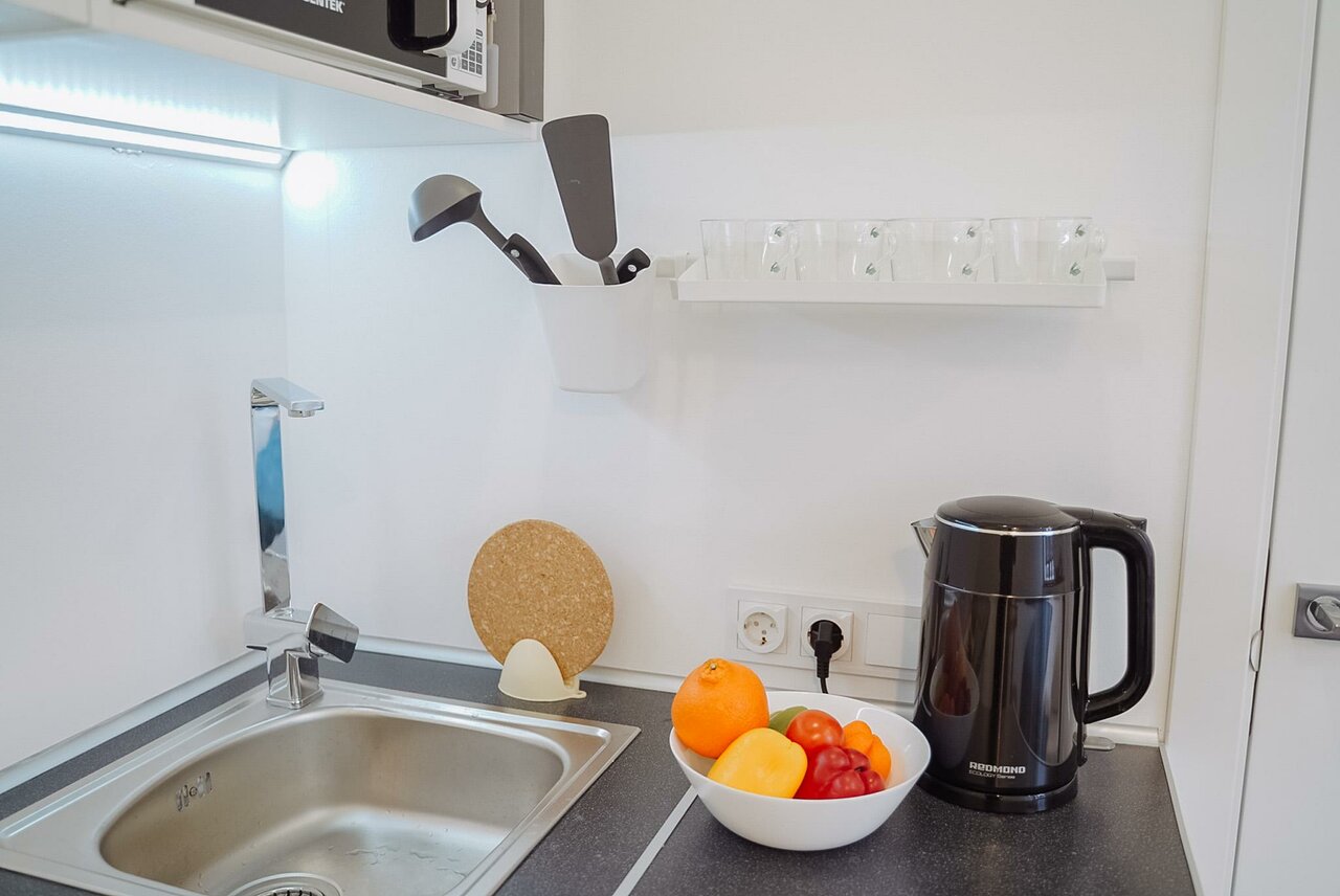 - Всё необходимое для проживания (кухня, посуда, чайник, полотенца и т. д.).