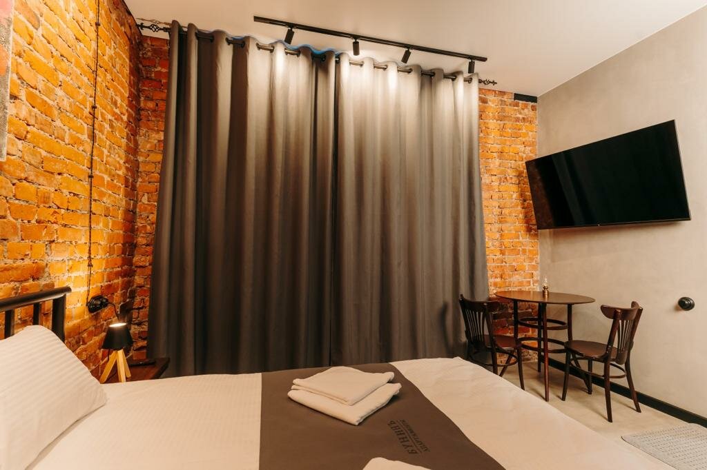 Останавливался на 3 ночи, очень понравилось! Отличный дизайн номера, решение с кирпичом офигенное, люблю такое. Сантехника огонь, особенно душевая кабина. Отдельный вход с крыльца, рядом еще один номер. Во-вторых, большой плюс расположение апартаментов, рядом все что нужно — рестораны, аптека, магазины. Достаточно просто дорогу перейти. Набережная рядом, 15 минут пешком. Единственное, пожалуй, маленькое замечание — нет кондиционера. С открытым окном шумно, с закрытым душно ) Администрация доброжелательная, всегда на связи. Итог — если еще доведется ехать в Петрозаводск, остановлюсь там же, всем рекомендую