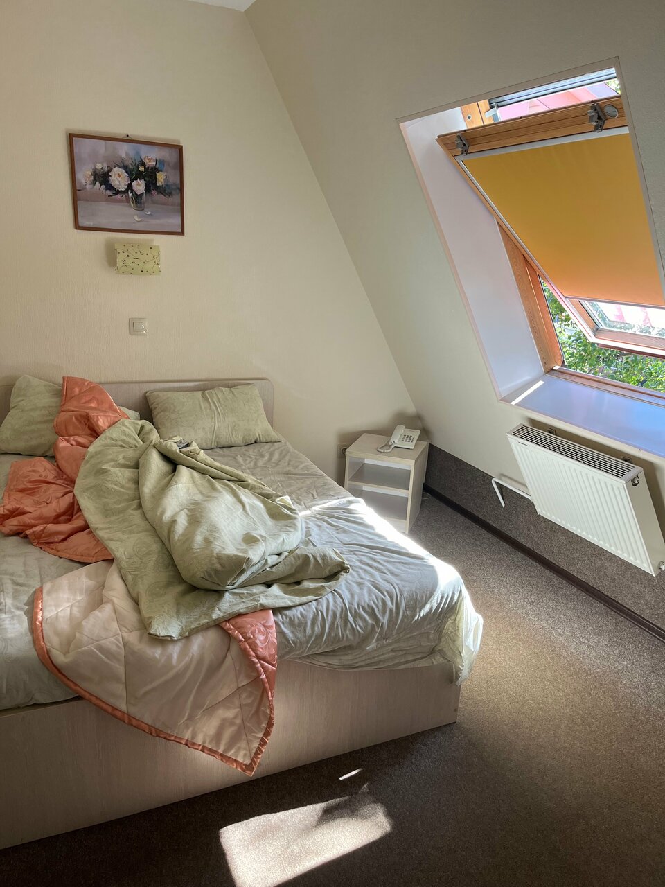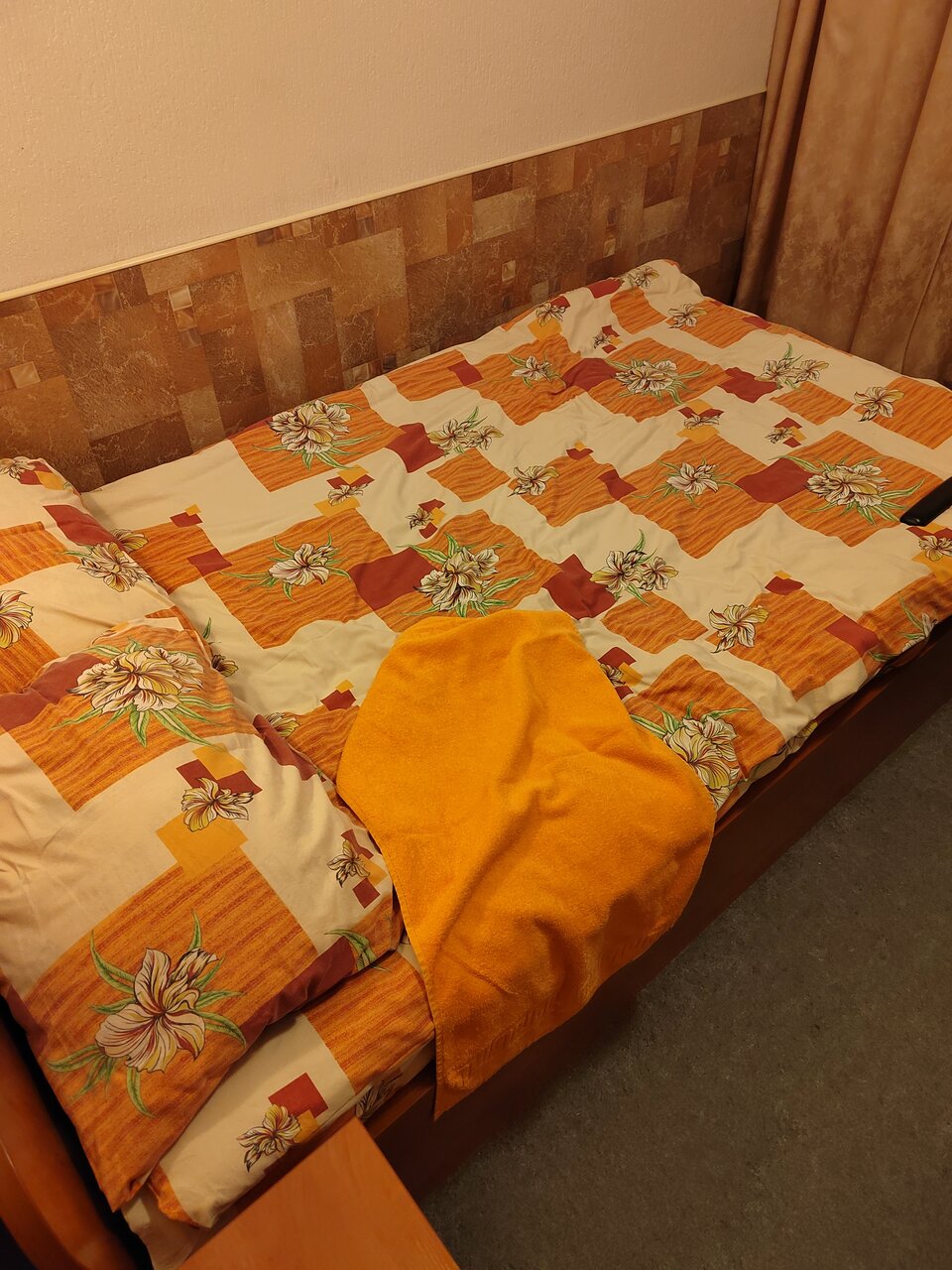 Гостиница приятно удивила чистой. В номерах ремонт, сантехника работает. Всего две звезды, а как приятно, что матрасы не продавленные, подушки мягкие, постельное белье свежее. В каждом номере есть маленький холодильник. Из минусов только завтрак, слишком ‘советский’, по типу что поставили, то и ешь. Скромный ‘шведский стол ‘ всё значительно улучшит. Персонал вежливый. Есть парковка.