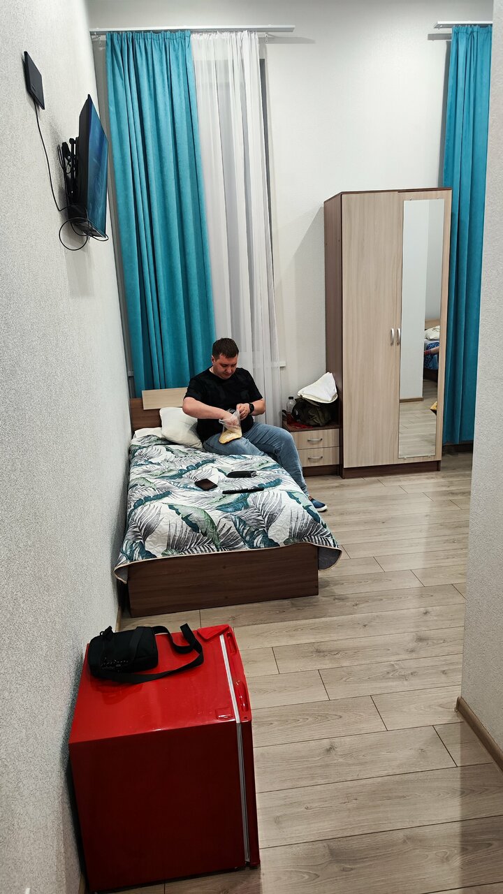 Гостиница неплохая еда вкусная но 4 за то что палатенца короткие очень и дополнительное место очень не удобно 3 ночи не спала но кровати если что нормальные есть холодильник там и шампуни и гель для душа дают не плохо причём наверное дешево