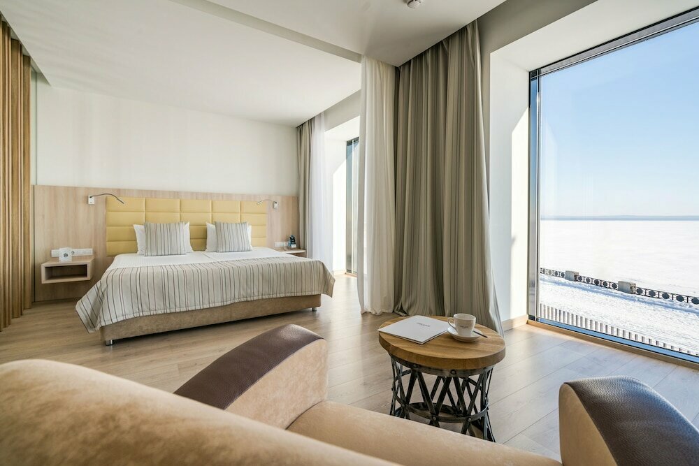 Шикарный отель! Всё на высшем уровне! Отдыхаем в нём не в первый раз и всегда уезжаем с массой положительных эмоций! Все блюда выполнены изысканно и невероятно вкусно! Персонал очень приветливый, квалифицированный! В ризотто оказались рыбные косточки, в итоге официант это заметила и согласовала с администратором вычесть это блюдо из чека! Было очень приятно! Такой жест говорит о высоком уровне обслуживания! Номера очень просторные, чистые! Расположение отеля в на берегу озера, в окна открываются прекрасные виды на набережную, центр города в 5 минутах ходьбы!