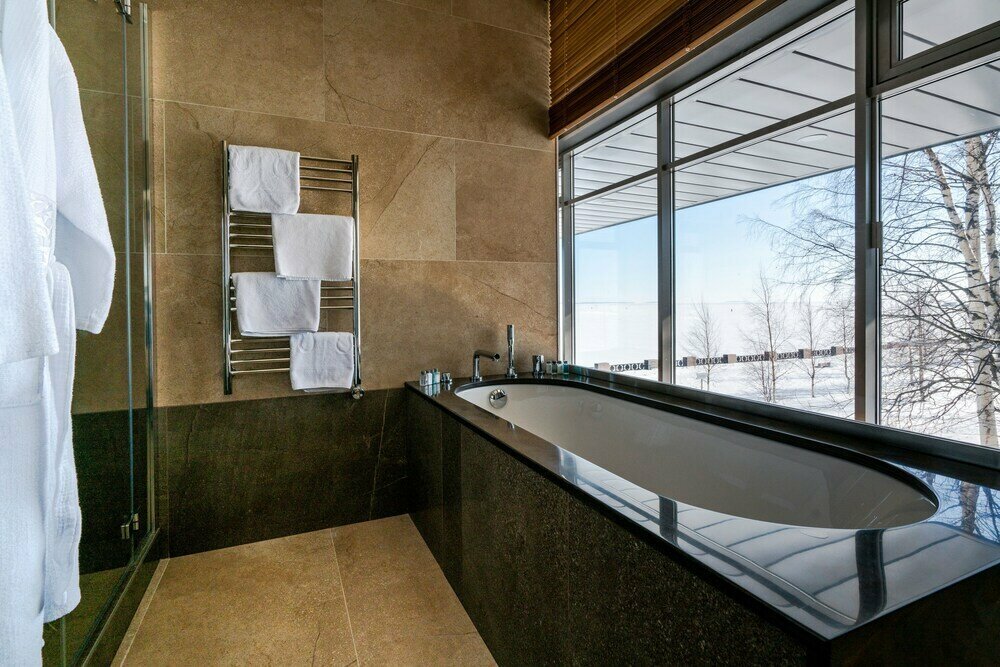 - Вкусная еда.; Хороший ресторан (можно заказать еду в номер).; Уютная атмосфера.; Современная сантехника.; Красивые виды.