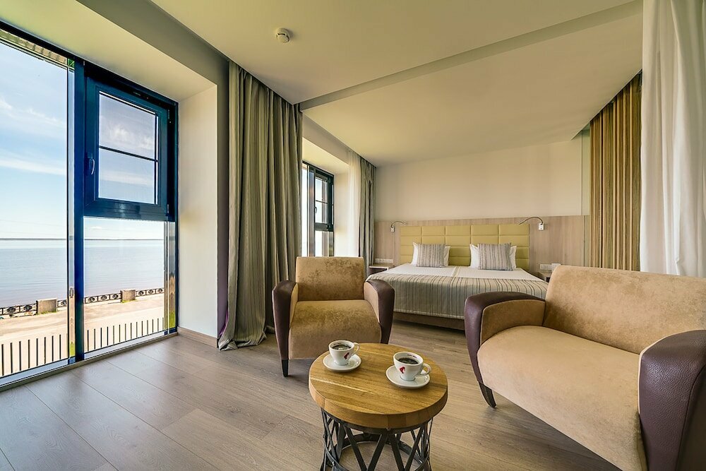 Гостиница находится в центре города, что очень удобно. Фактически на набережной. Вокруг — парки и зоны отдыха. Сама гостиница уютная, персонал вежлив и доброжелателен. Номера чистые и уютные. Есть возможность добавить спальное место в номер.
