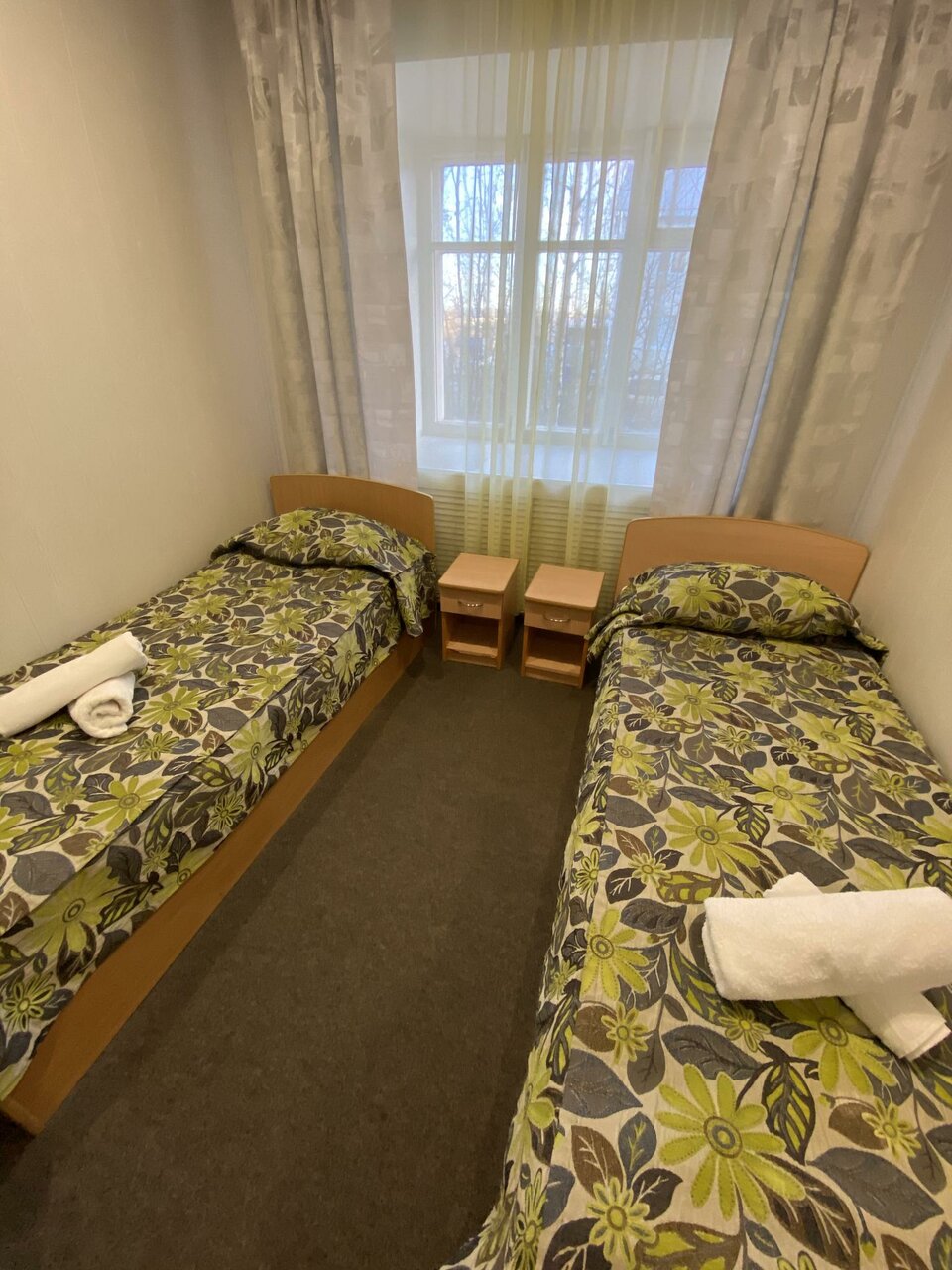 Хорошая гостиница, есть много удобств. Номера все чистые, аккуратные, присутствуют обогреватели, телевизор. Дополнительно можно воспользоваться стиркой, есть утюг. На каждом этаже стоит кулер, всегда полный. Мусор выносят ежедневно. На первом этаже недорогое кафе. Предлагают завтрак, обед и ужин. Всё вкусно и сытно. Персонал приветливый, всегда подскажут и расскажут. До центра можно спокойно дойти пешком, остановка в 50 метрах. Из минусов мягкие продавленные матрасы, шторы пропускают свет, хорошая слышимость.
