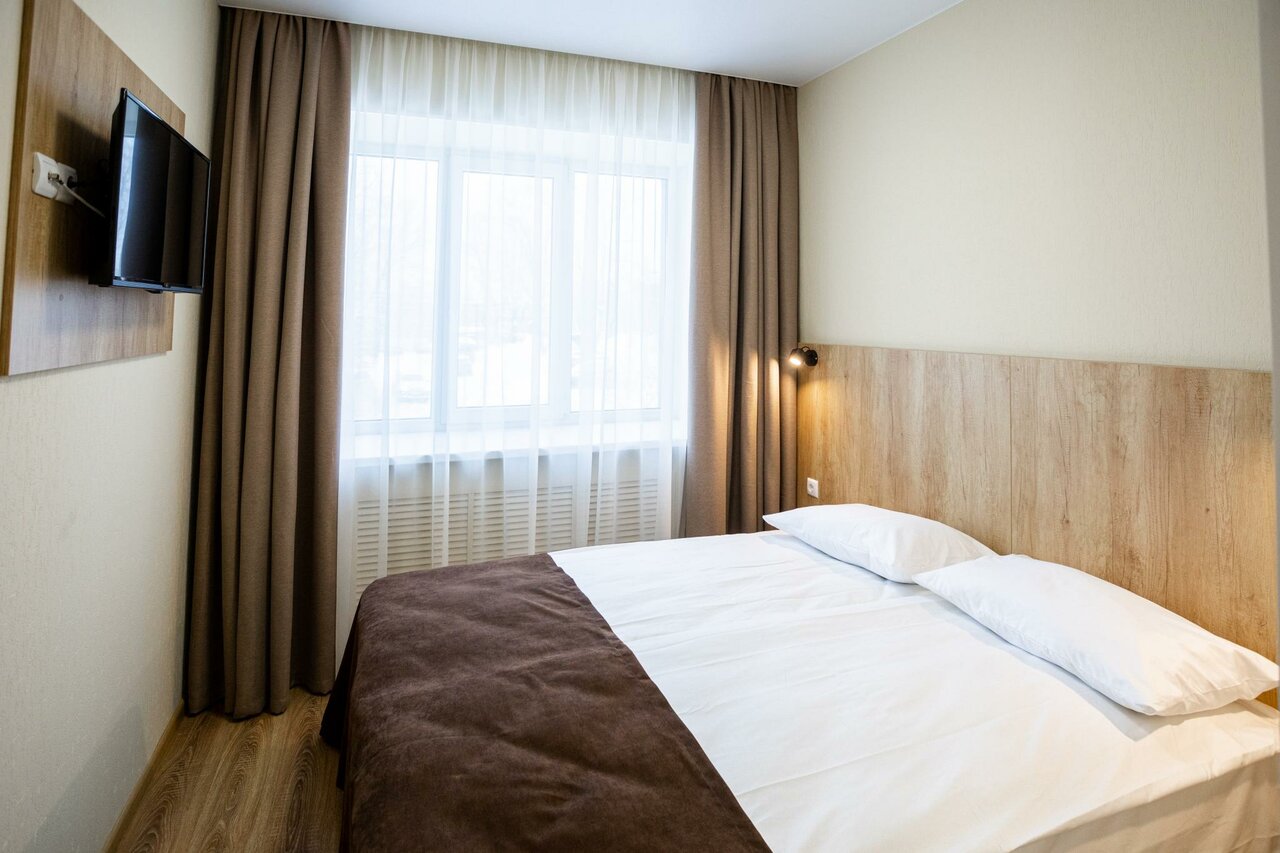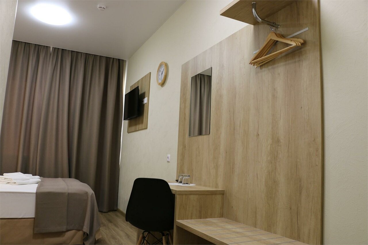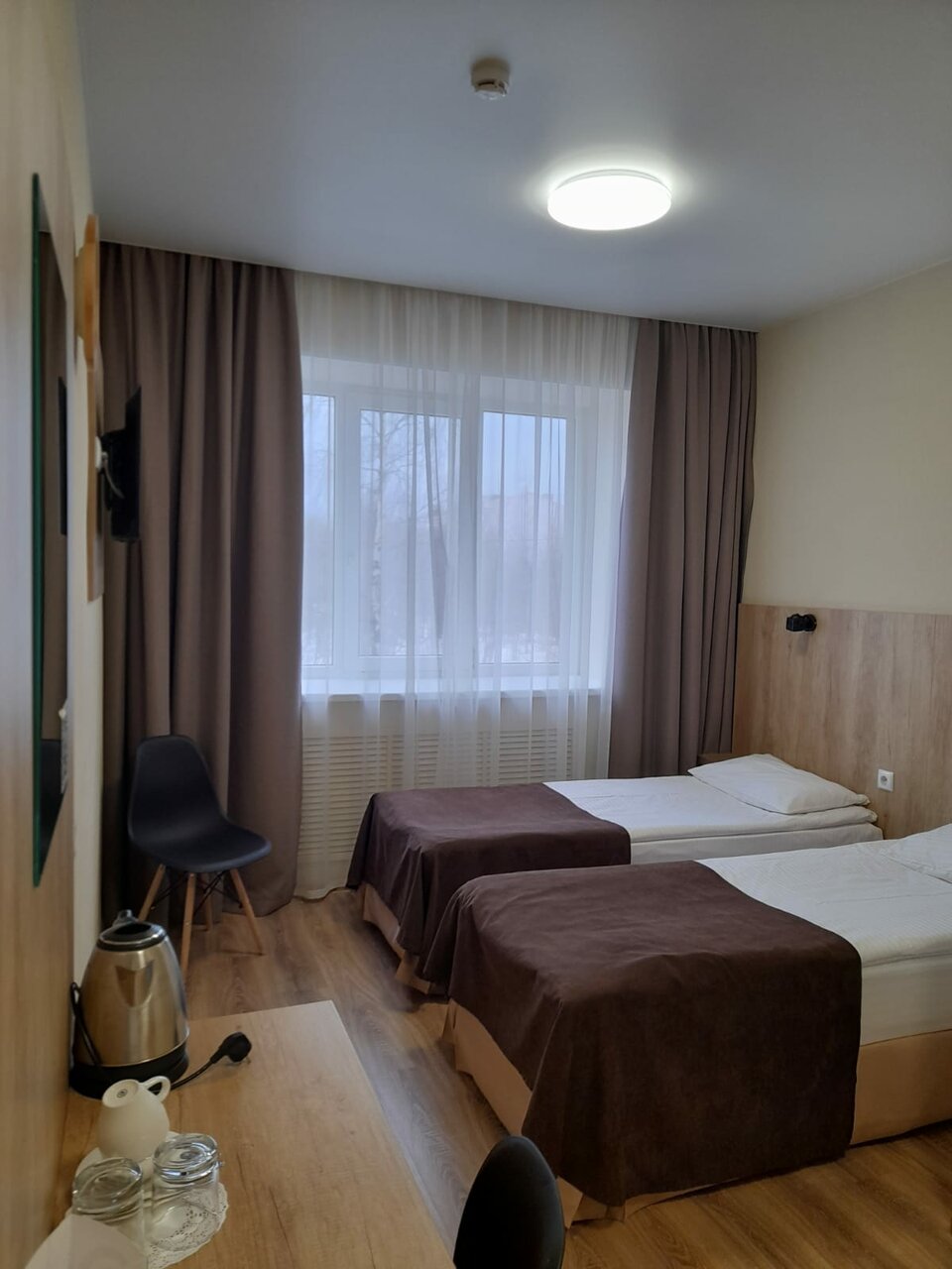 Улучшенный стандарт . Небольшой номер. Всё нормально. Не хватило одноразовых тапочек, был удивлен что их не было. Можно добавить завтрак за небольшую доплату, своя небольшая столовая на первом этаже. Шведский стол, но выбор невелик. Позавтракать без изысков пойдёт. Удобно что недалеко от вокзала, в шаговой доступности