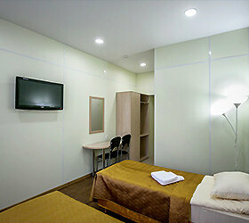 С группой туристов приехала в Петрозаводск, жила в 3х-местном номере. Из хорошего: чисто, вкусно, тихо, хорошее расположение (если не считать близкое соседство с тюрьмой), в душевой горячая вода с хорошим напором. Из недостатков: очень тесно, нет не только шкафов, а даже тумбочек. Трём людям просто негде разместить вещи. Такой же тесный санузел, для мелких людей. Вы сможете сидеть на унитазе только если облокотитесь на раковину. Думаю, эти недостатки можно исправить, и впечатление будет лучше.