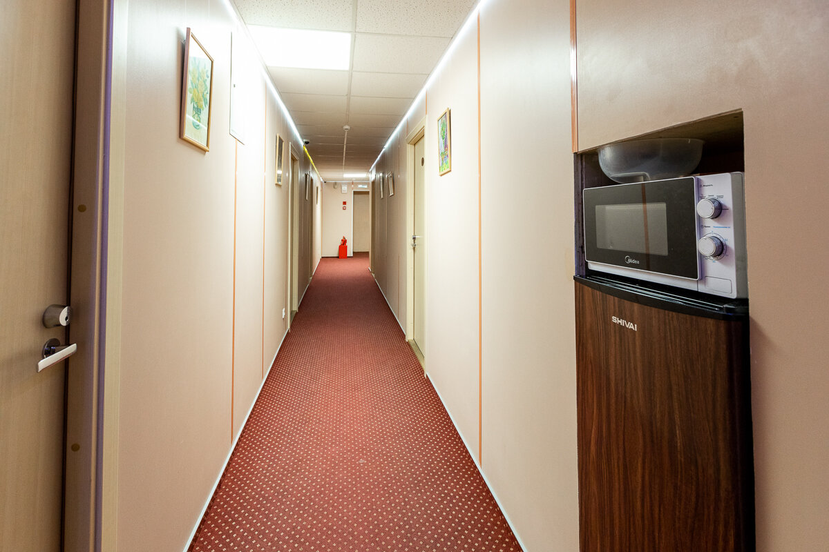 Уставшим путешественникам есть отдельная комната для отдыха, есть чайник вскипятить воду для чай-кофе, но вода только из под крана. Рисковать не стали, рядом много кафе, ресторанов, кондитерских, где можно перекусить. Отдохнуть с дороги можно, в номере отличная ванная комната, всё чисто и прилично. Обслуживающий персонал дружелюбный и приветливый. Гостиница находится в удобном месте: через квартал центральные улицы города, чуть ниже — набережная Онежского озера.